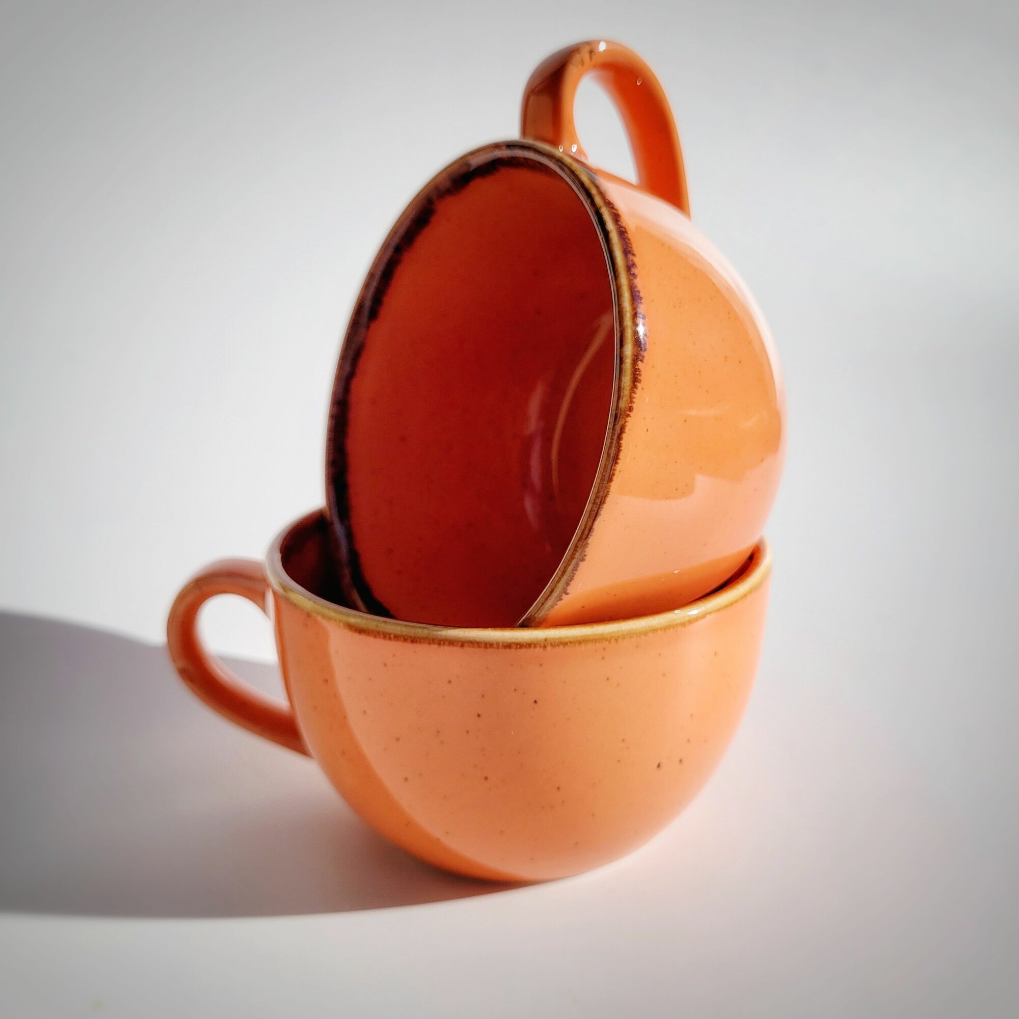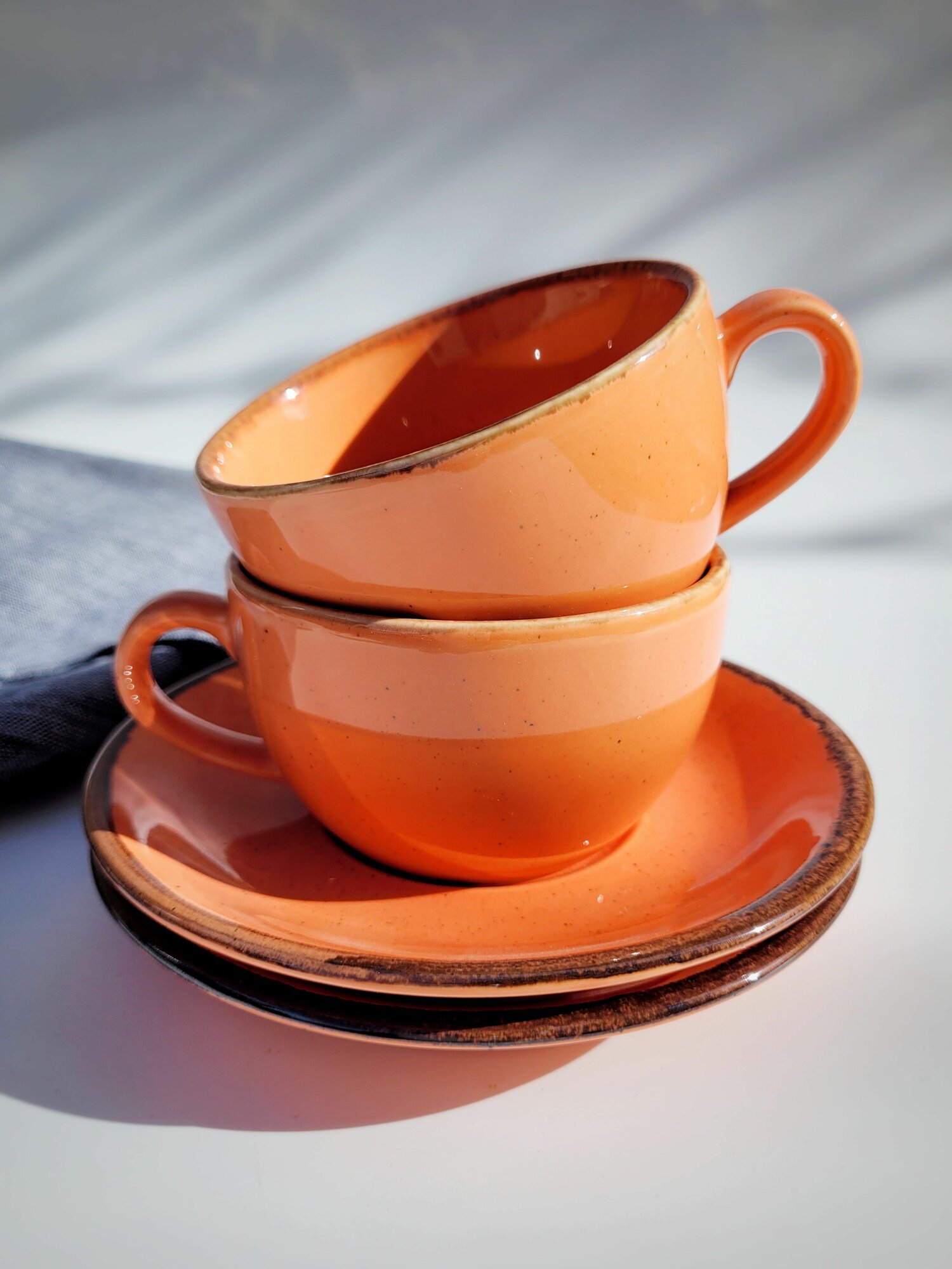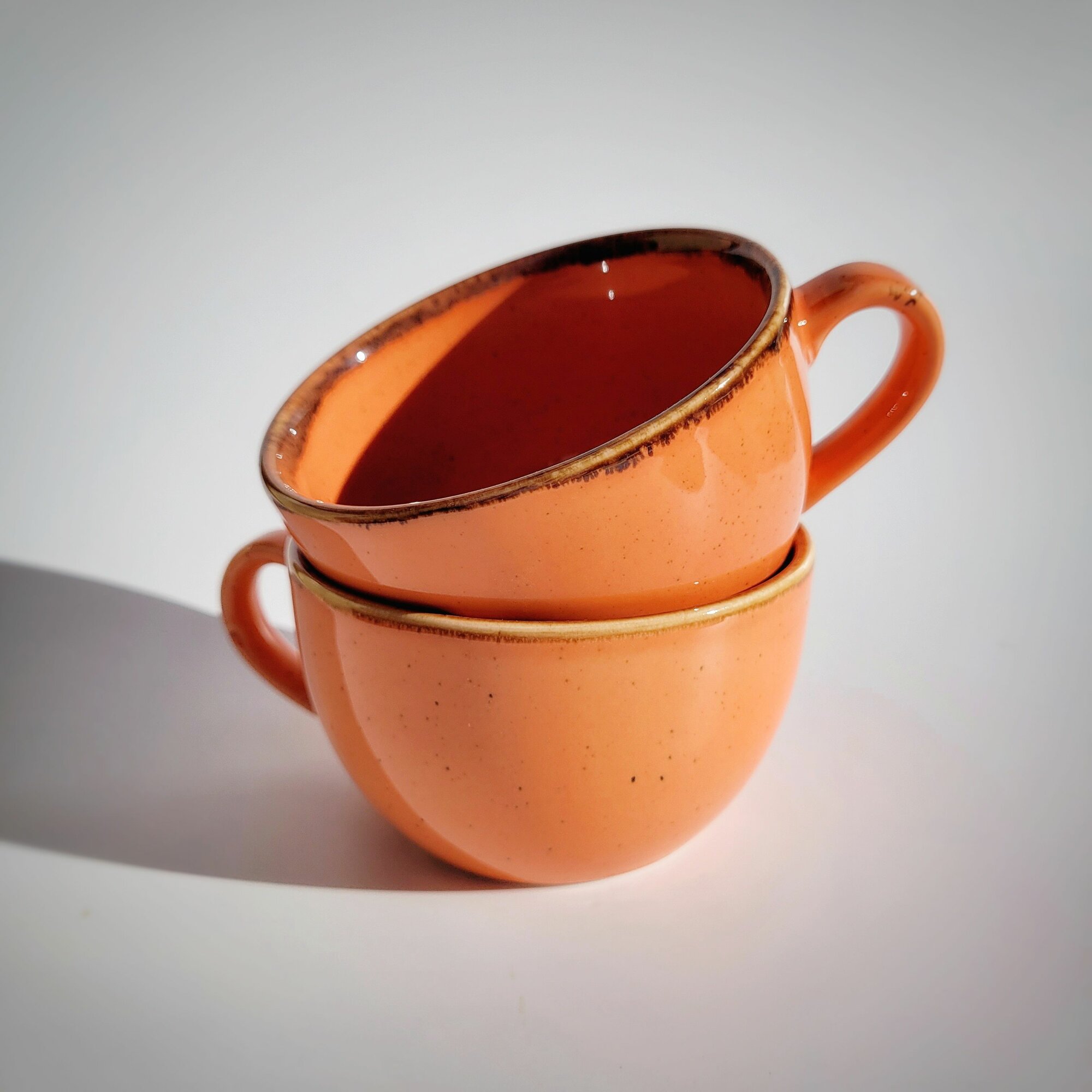 Купить Набор чайные пары, кофейные оранжевые Porland "Seasons" 2 шт,250 мл. Ударопрочный, профессиональный фарфор. Для чая, кофе, капучино, латте.