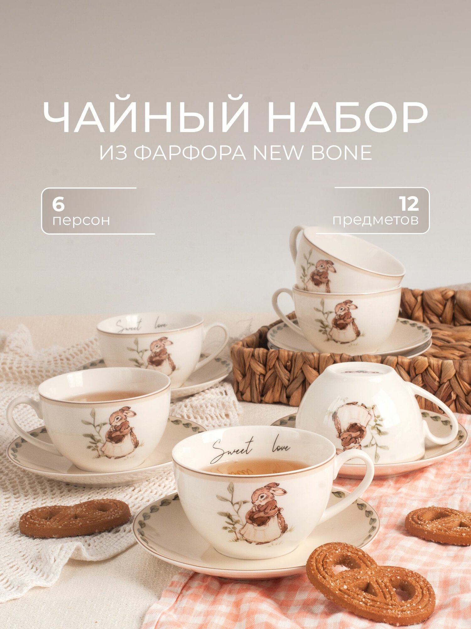 Чайный сервиз JEWEL "Время друзей", 12 предметов, фарфор, белый