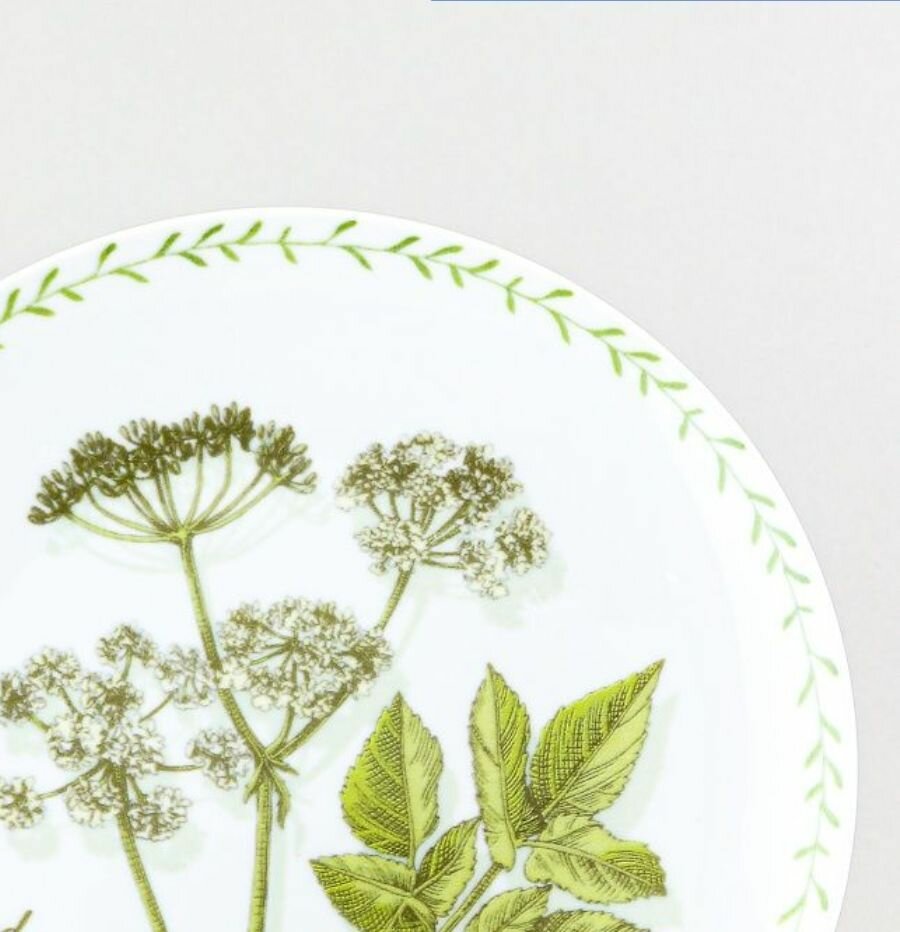 Тарелки десертные, блинные плоские набор, 175 мм, Добрушский фарфоровый завод, "Ботаника: травы и цветы" - 4 шт. ; Белый; зеленый цвет интересное: