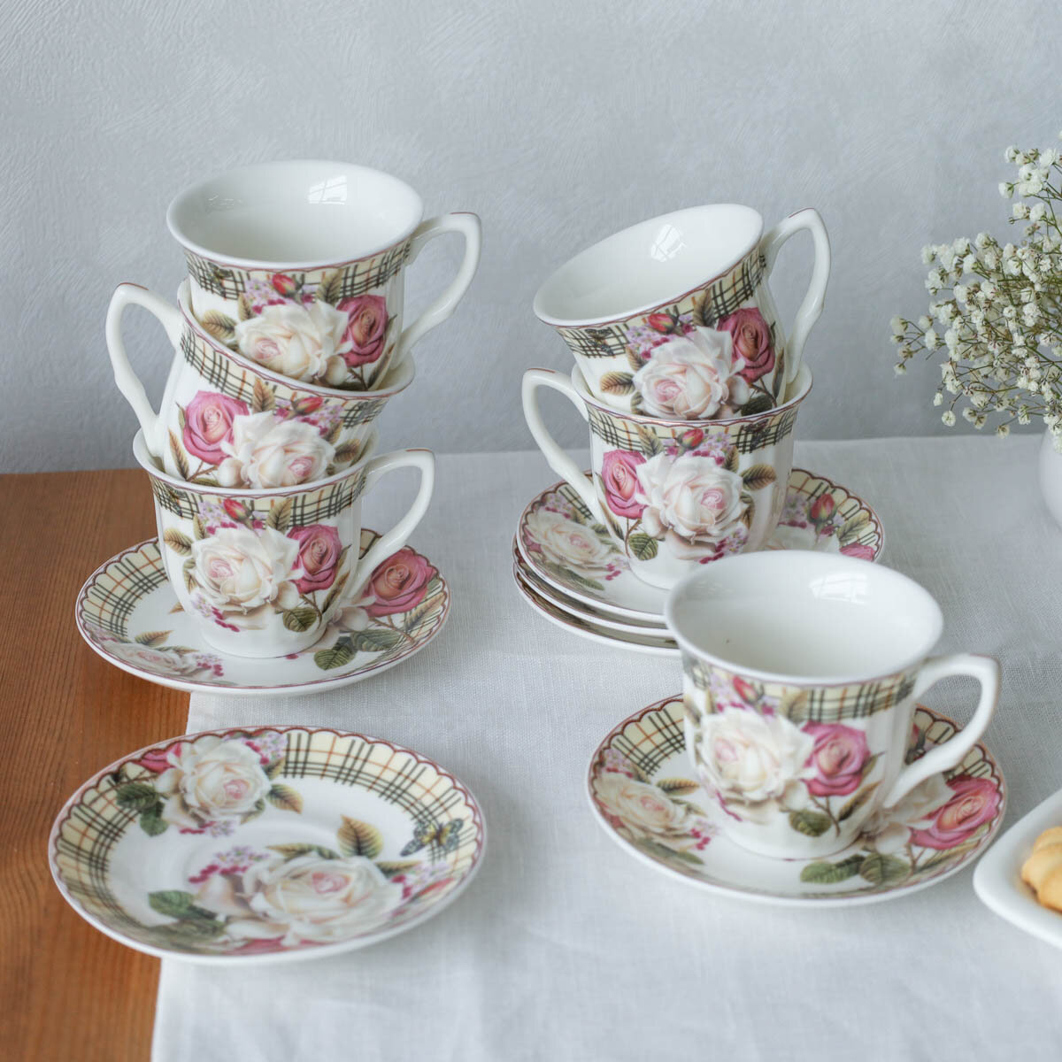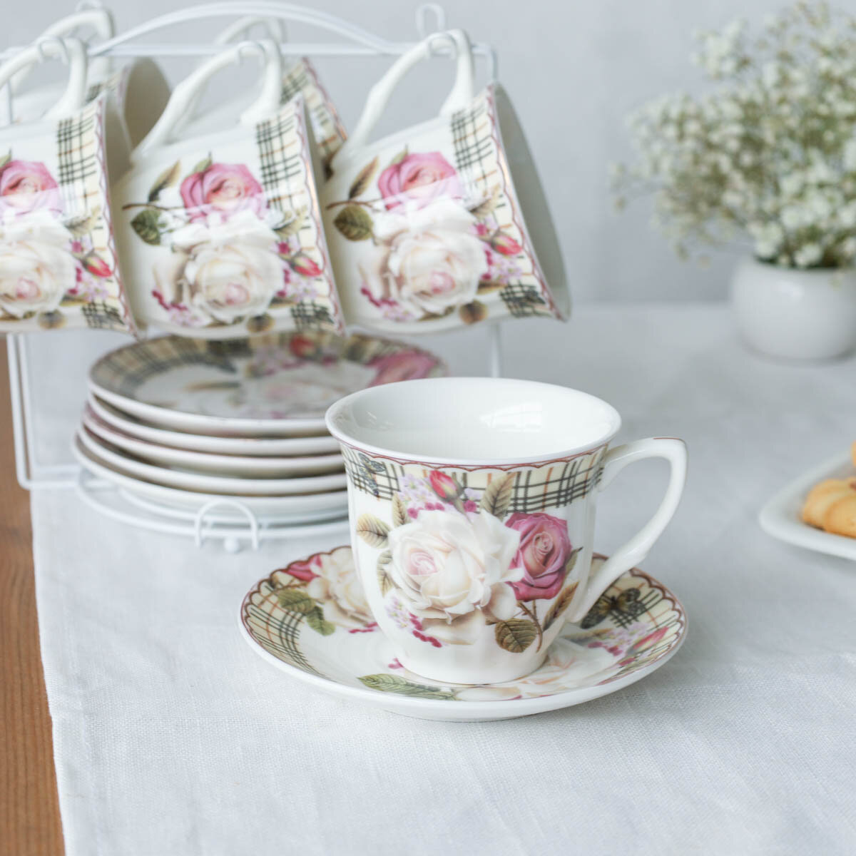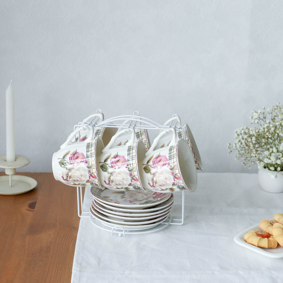 Чайный набор 12 предметов 250 мл Чайная роза, металлическая подставка интересное: