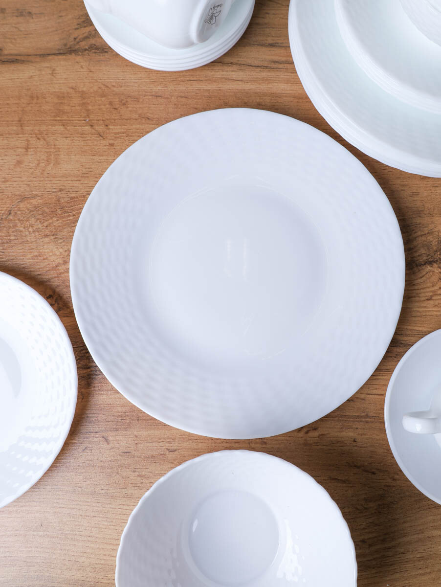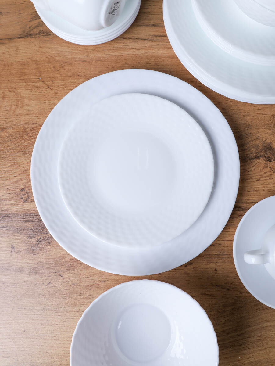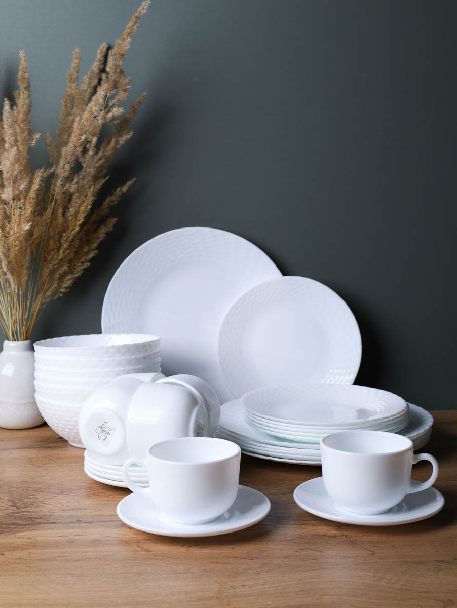 Купить Столовый набор посуды 30 предметов/ Тарелки с чайным набором Фактурные белые
