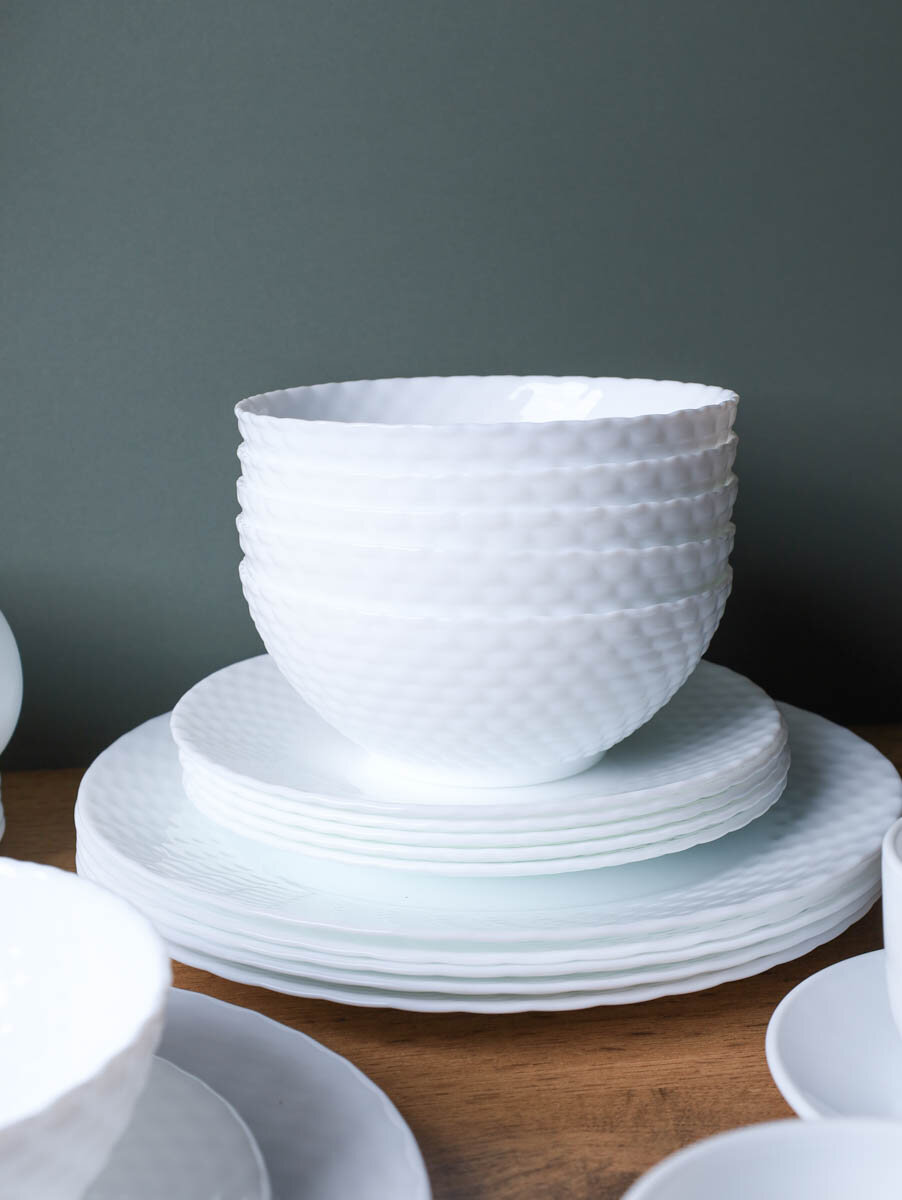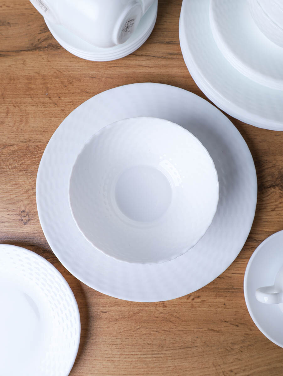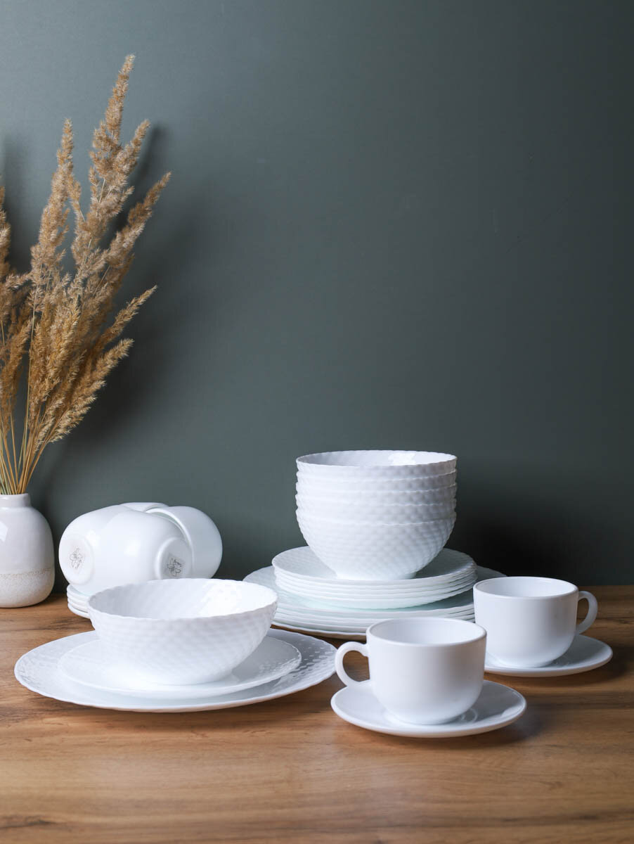 Купить Столовый набор посуды 30 предметов/ Тарелки с чайным набором Фактурные белые