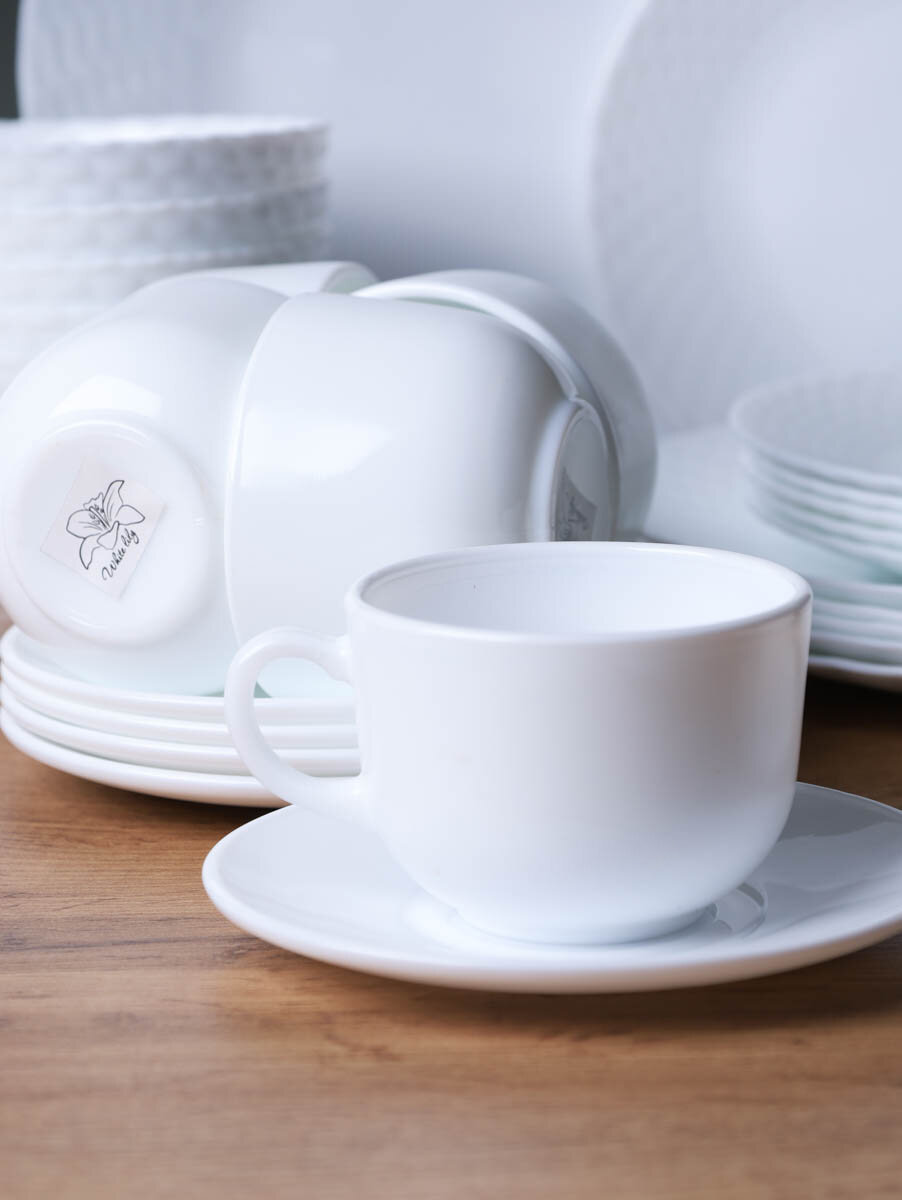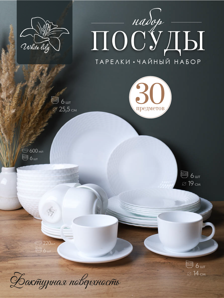 Столовый набор посуды 30 предметов/ Тарелки с чайным набором Фактурные белые интересное:
