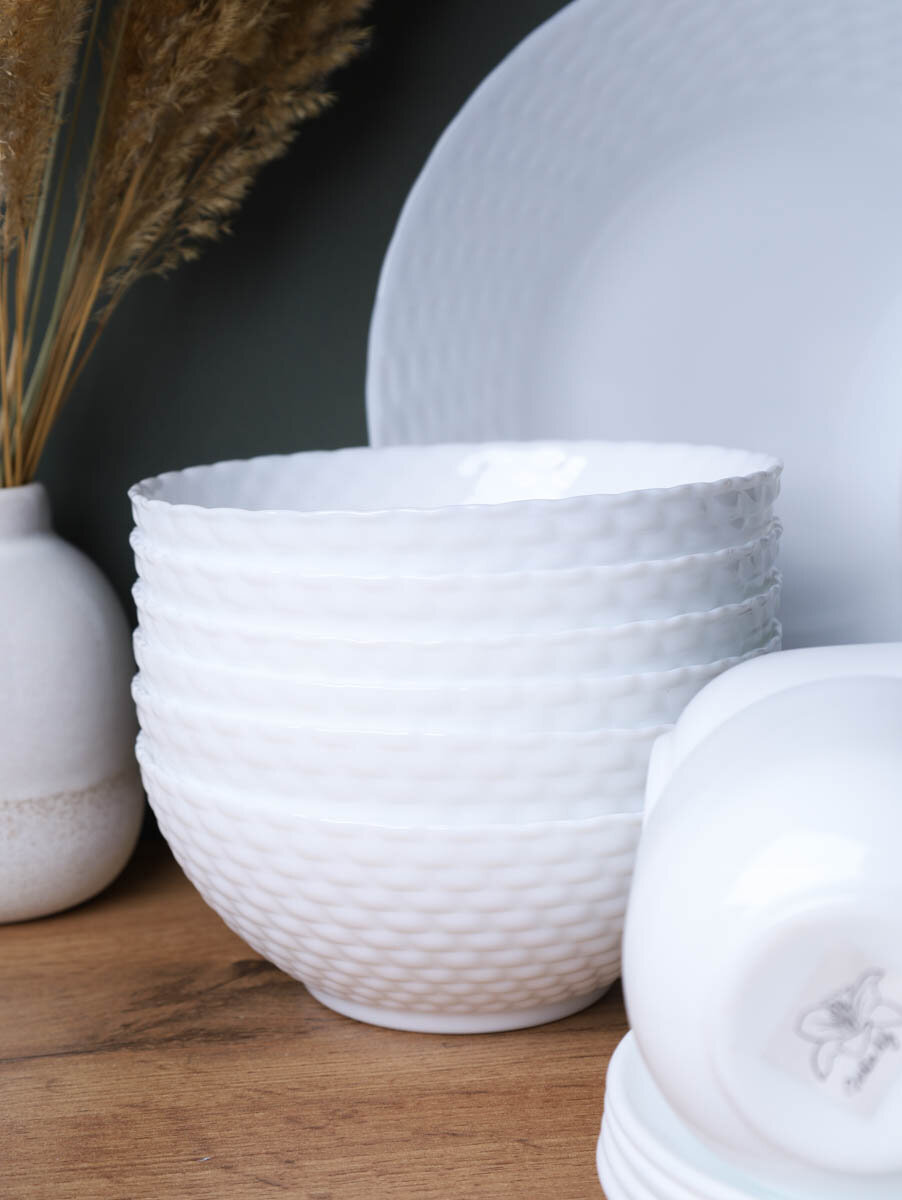 Столовый набор посуды 18 предметов/ Тарелки на 6 персон Фактурные белые