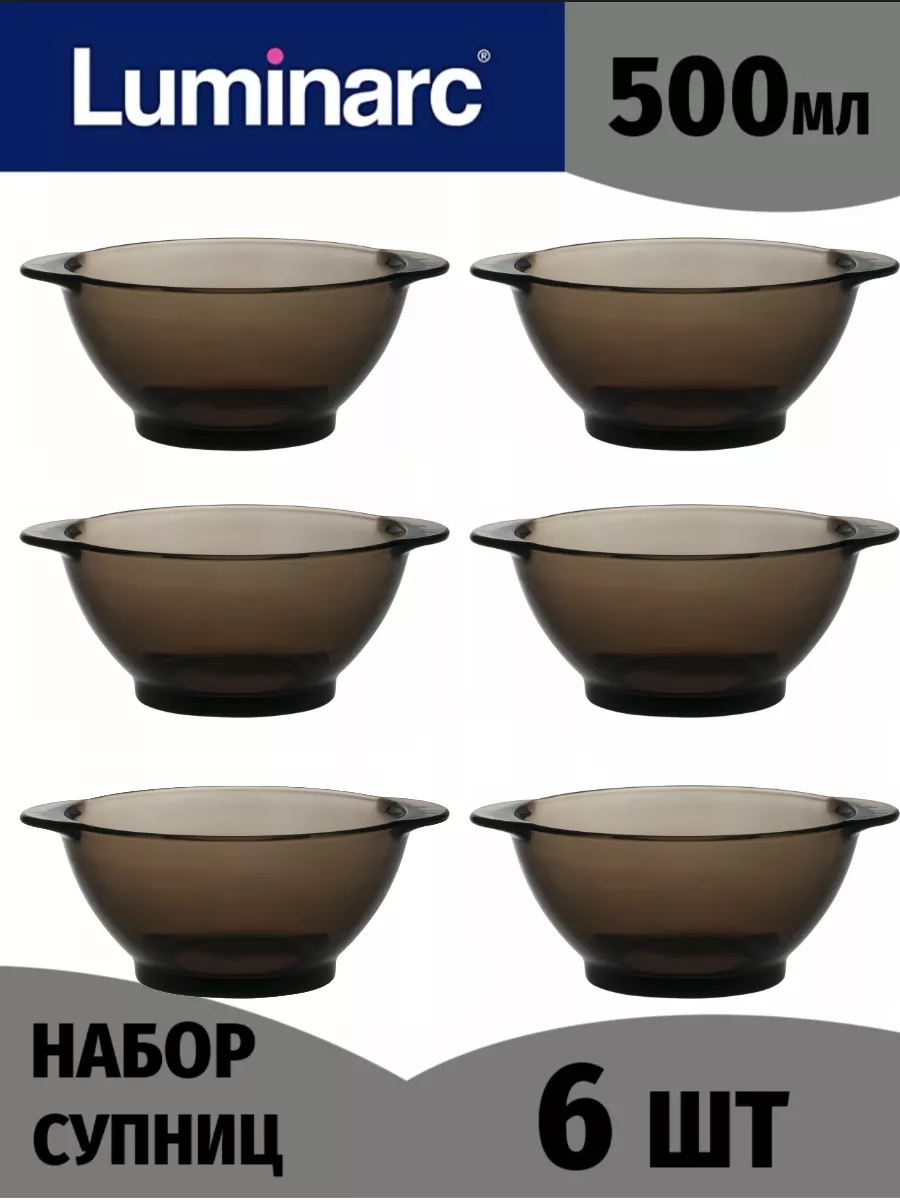 Набор бульонниц Luminarc 560мл дымчатых 6 штук H8504/6 ударопрочное стекло интересное: