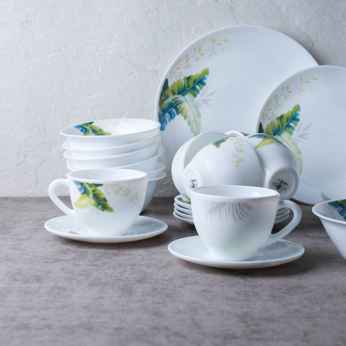 Купить Столовый сервиз White Lily "Папоротник", стеклокерамика, 37 предметов ЕВРО с чайным сервизом