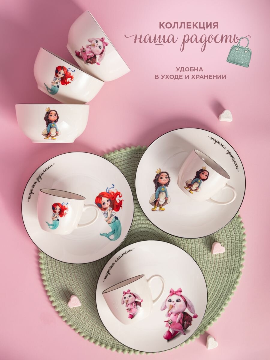 Сервиз Lefard "Принцесса", набор детской посуды, фарфоровый, 3 предмета: салатник 470 мл, тарелка 20 см, кружка 220 мл