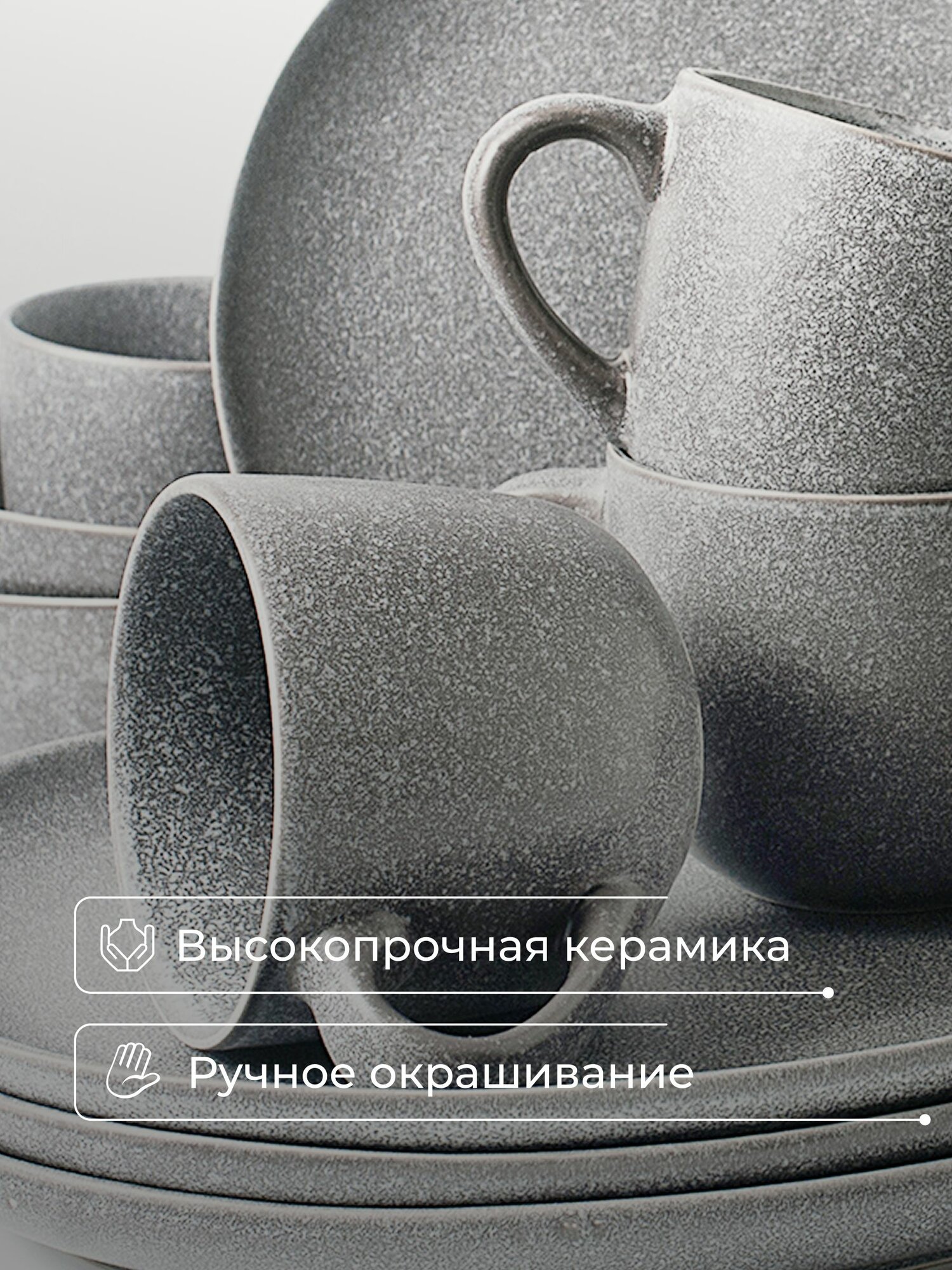 Сервиз JEWEL Grey, домашний, керамика, 16 элементов, для СВЧ, для посудомойки, серый интересное: