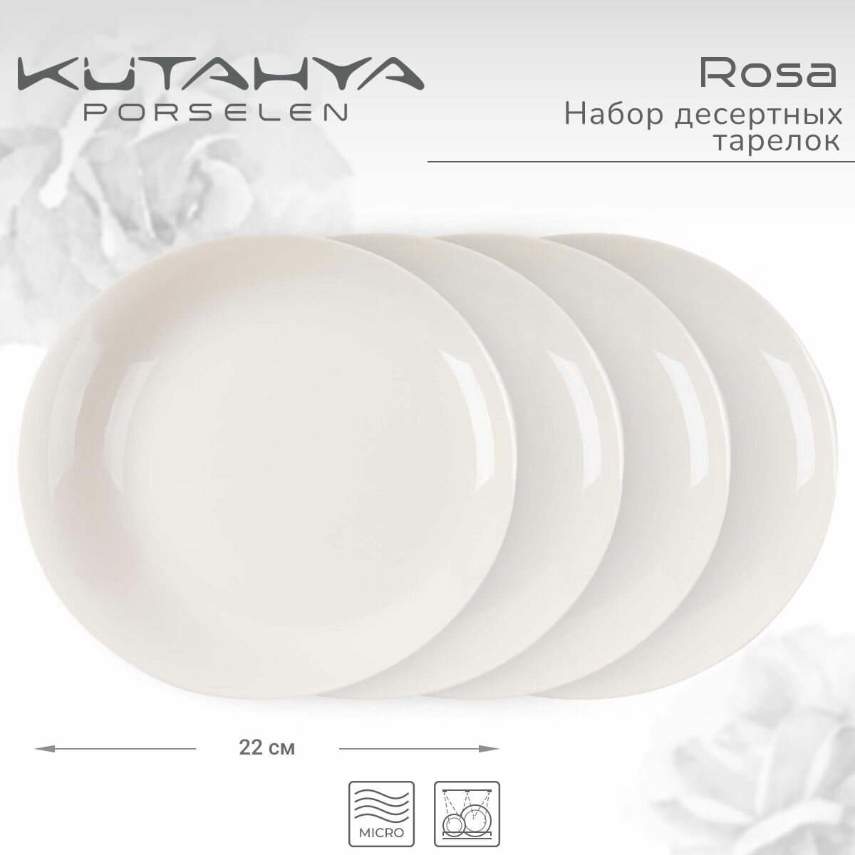 Набор десертных тарелок Kutahya Rosa, 22 см, фарфор, белые, 4 шт. интересное: