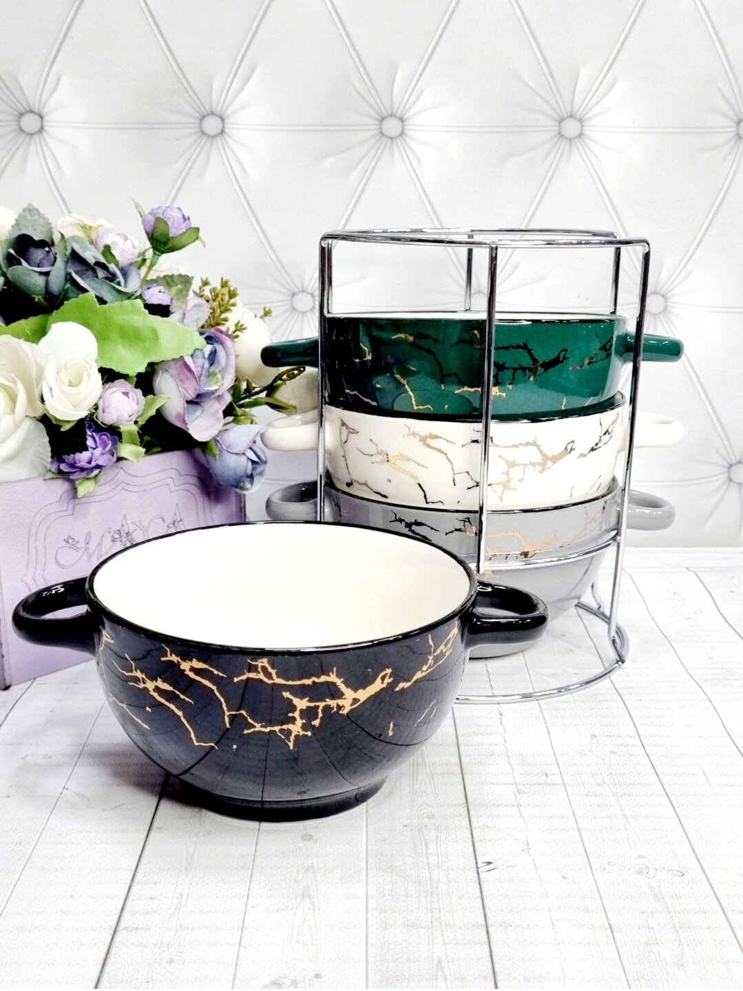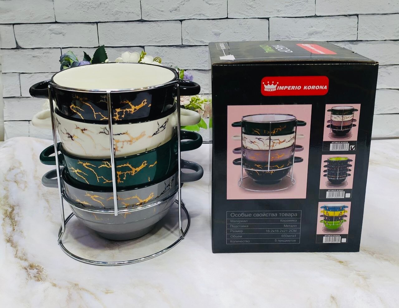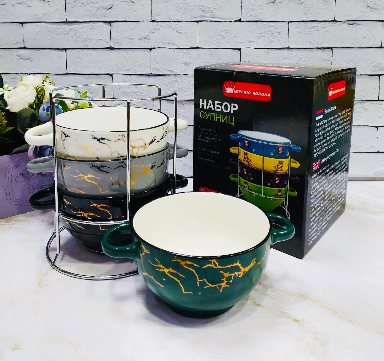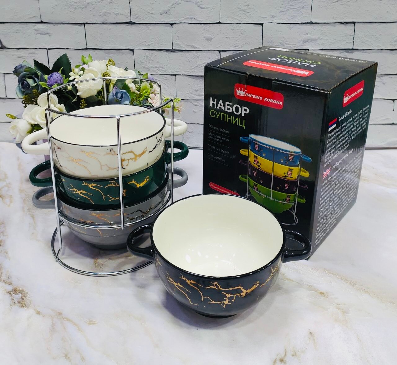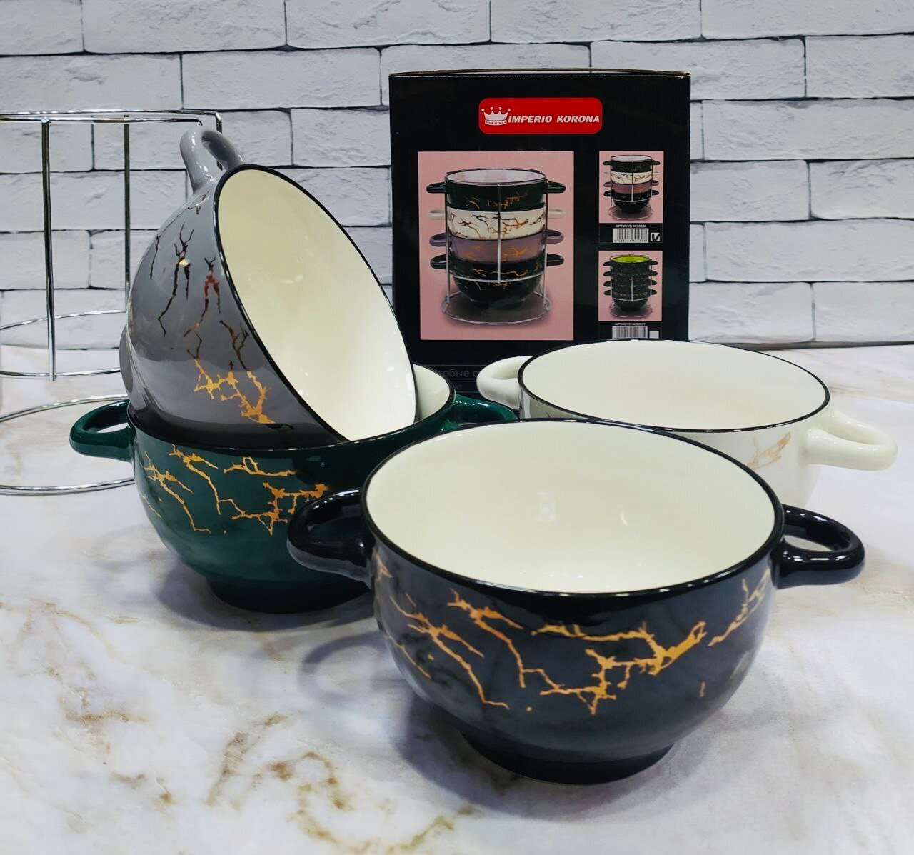 Набор супниц с ручкой керамика ИМПЕРИО КОРОНА "Мрамор", 650 мл, 5 предметов. интересное: