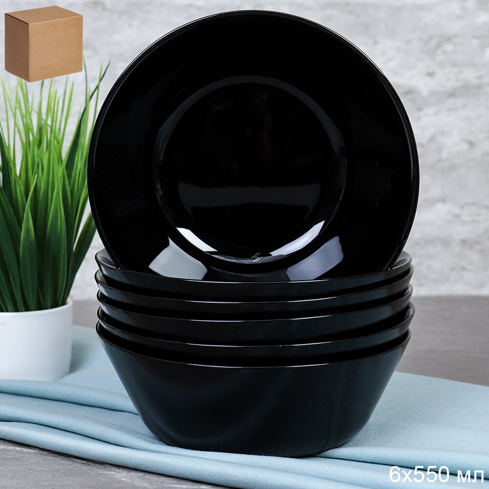 Салатник 550 мл "Евро" тарелка глубокая - 6 штук / черный интересное: