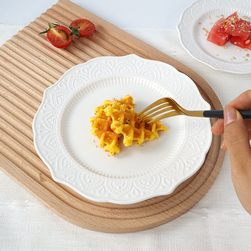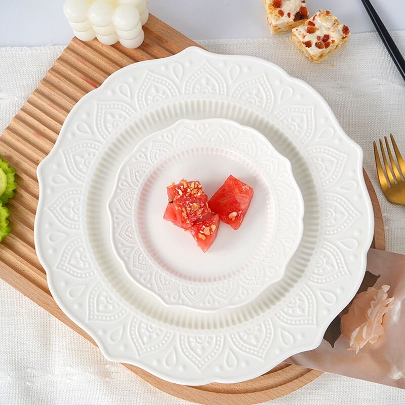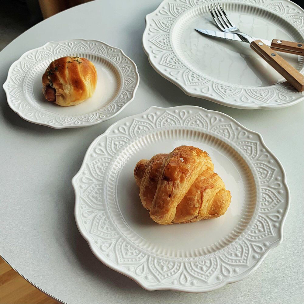 Тарелка "Французские Кружева", 20см, керамика, фарфор, рельефная, белая