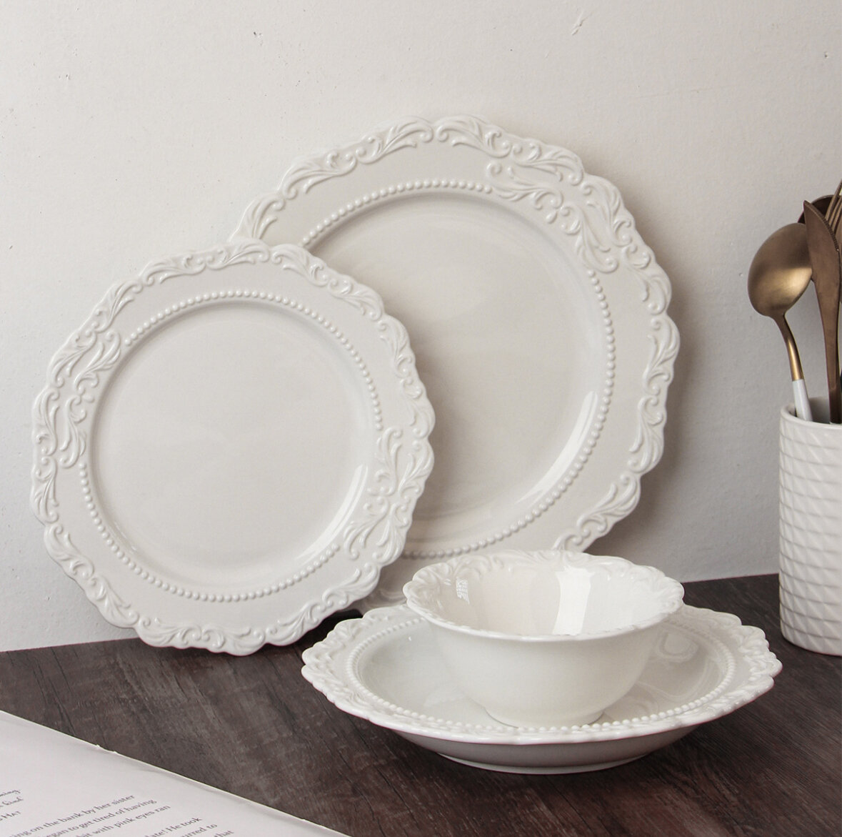 Тарелка "Французские кружева", керамика/фарфор, круглая, рельефная, 26.6х2.5см, белая интересное: