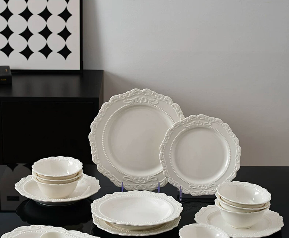 Тарелка "Французские Кружева", 20см, керамика, фарфор, рельефная, белая