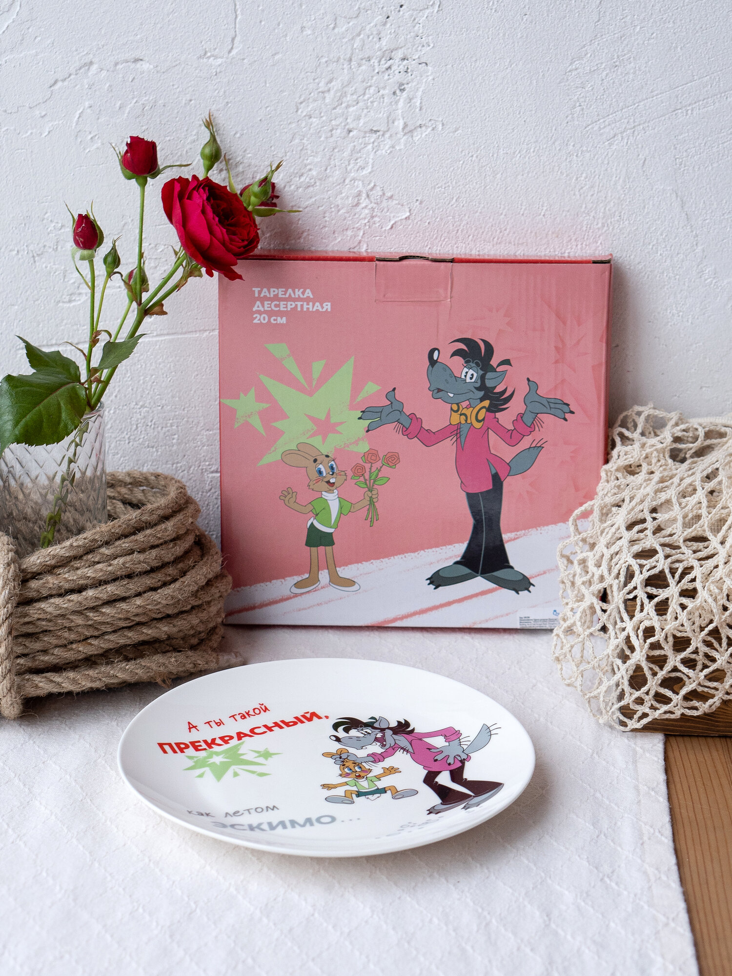 Купить Тарелка десертная 20 см. фарфор "Ну, Погоди! " в подарочной упаковке. Коралл.