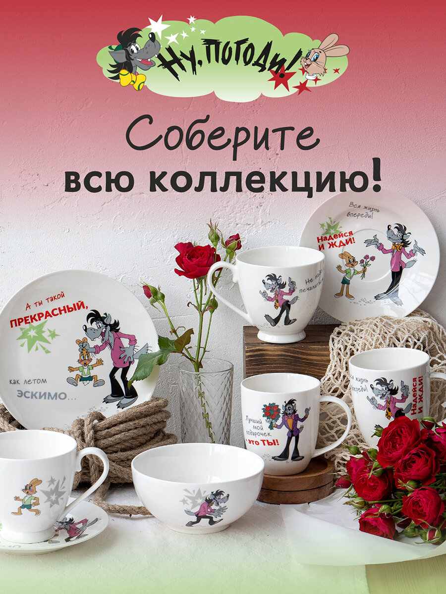 СохранитьТарелка десертная 20 см. фарфор "Ну, Погоди! " в подарочной упаковке. Коралл. интересное: