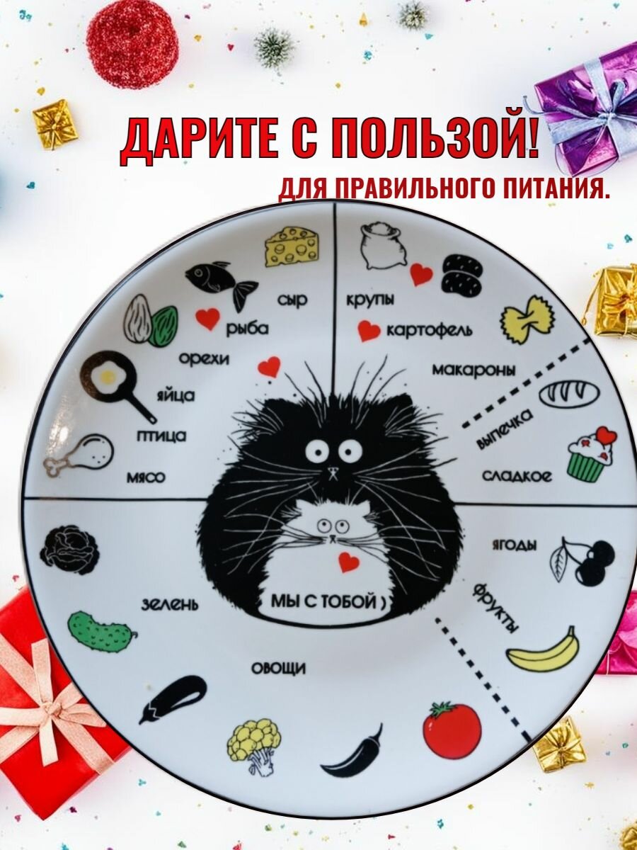 Тарелка круглая "Котики", керамическая, для похудения, 23см, 4 цвета, подарочная упаковка интересное: