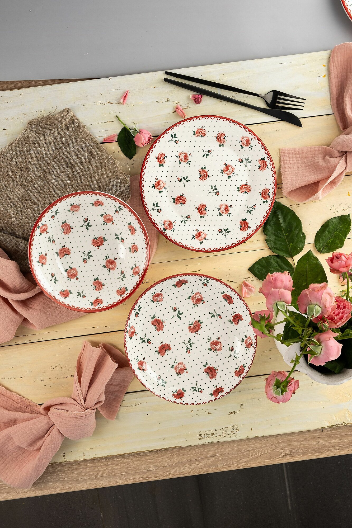 Набор плоских тарелок из фарфора 20см 6шт "Английский ситец", тарелки десертные на 6 персон