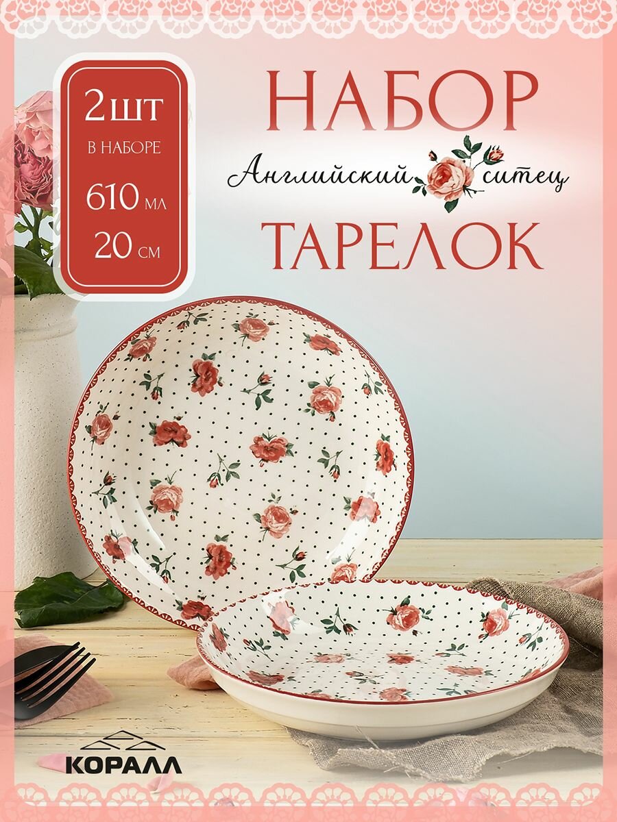 Купить Набор глубоких тарелок из фарфора 20см 2шт "Английский ситец", тарелки с бортиком столовые закусочные