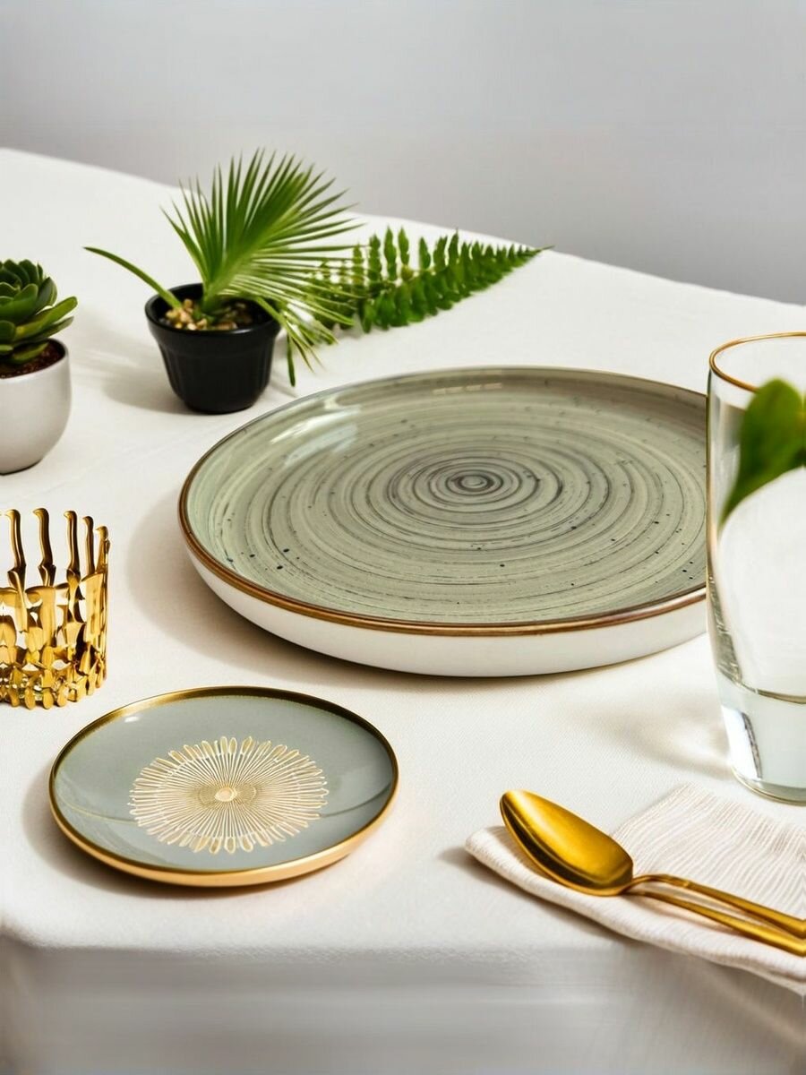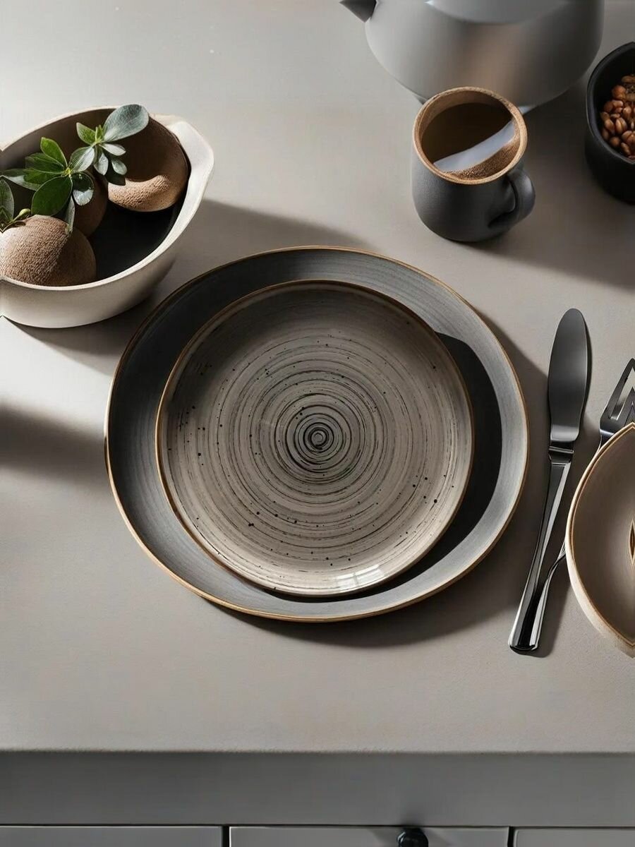Керамическая круглая обеденная тарелка с бортиком Grey Eclipse 20 см интересное: