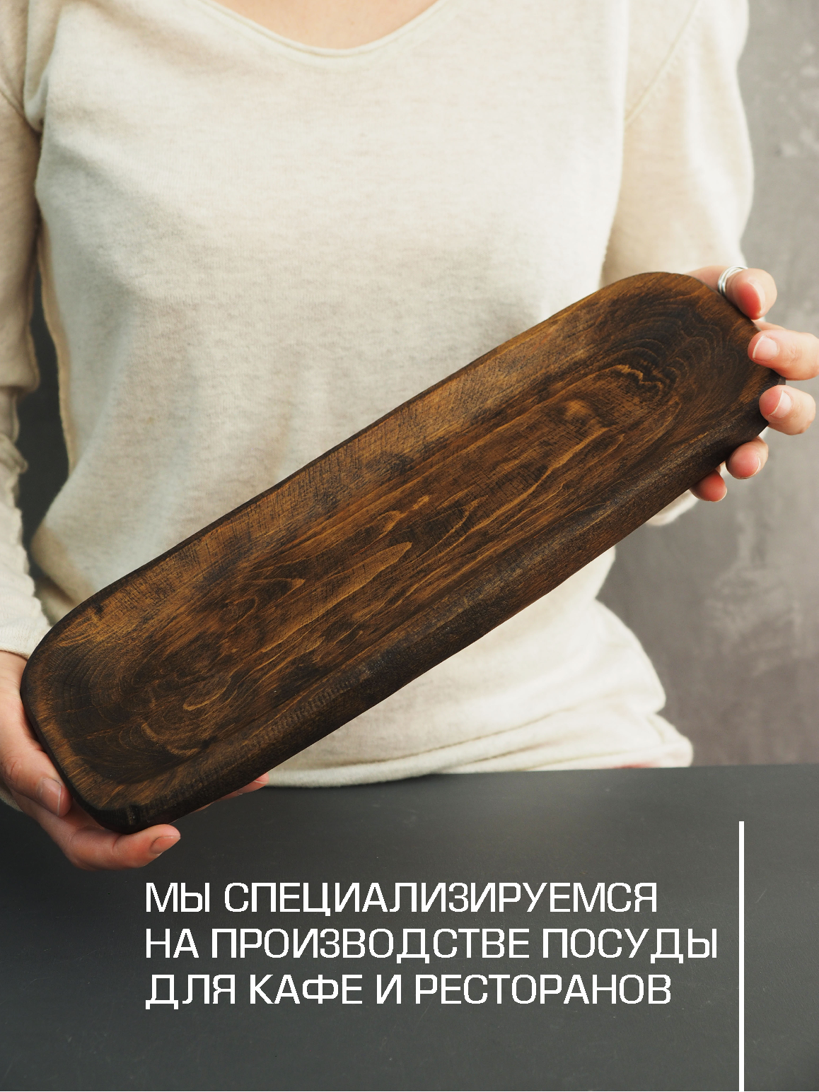 Деревянная прямоугольная узкая тарелка в деревенском стиле для сервировки стола интересное: