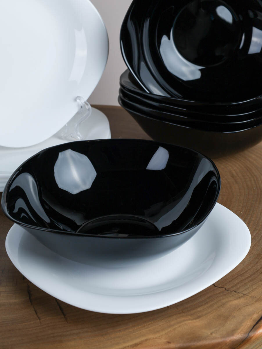 Тарелка суповая "Black-White" квадратная 6 штук 500 мл, набор черных и белых глубоких тарелок