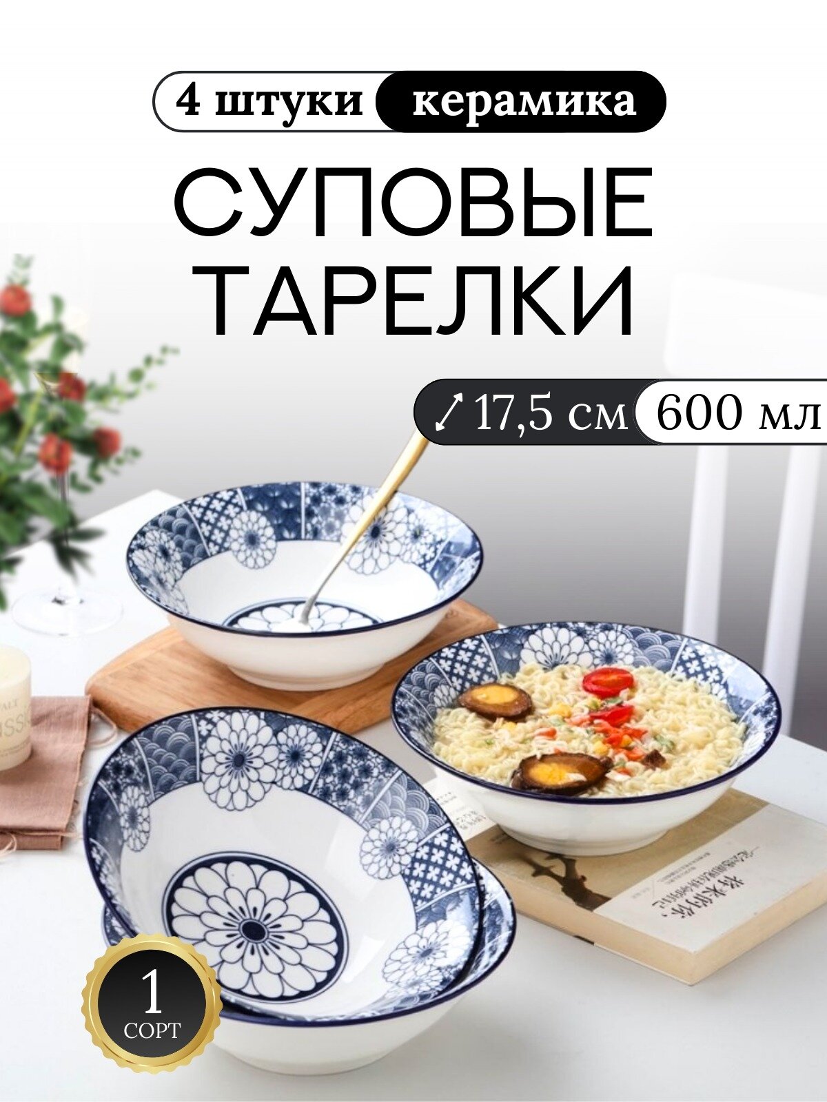 Бульонницы Салатники 4 штуки Набор тарелок Столовый сервиз Суповые тарелки