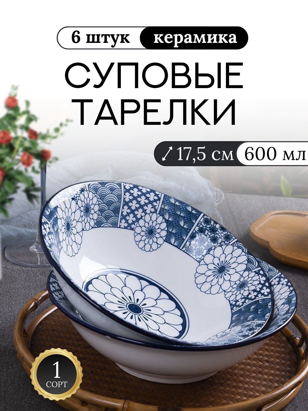 Бульонницы Салатники 6 штук Набор тарелок Столовый сервиз Суповые тарелки