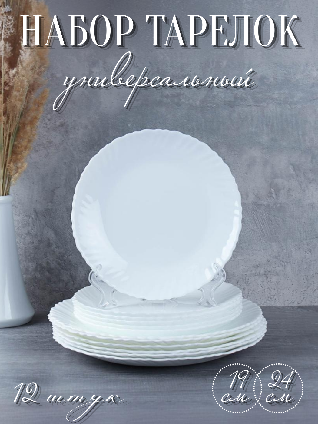 Набор тарелок 12 штук "Белоснежный", тарелки 19 см и 24 см интересное: