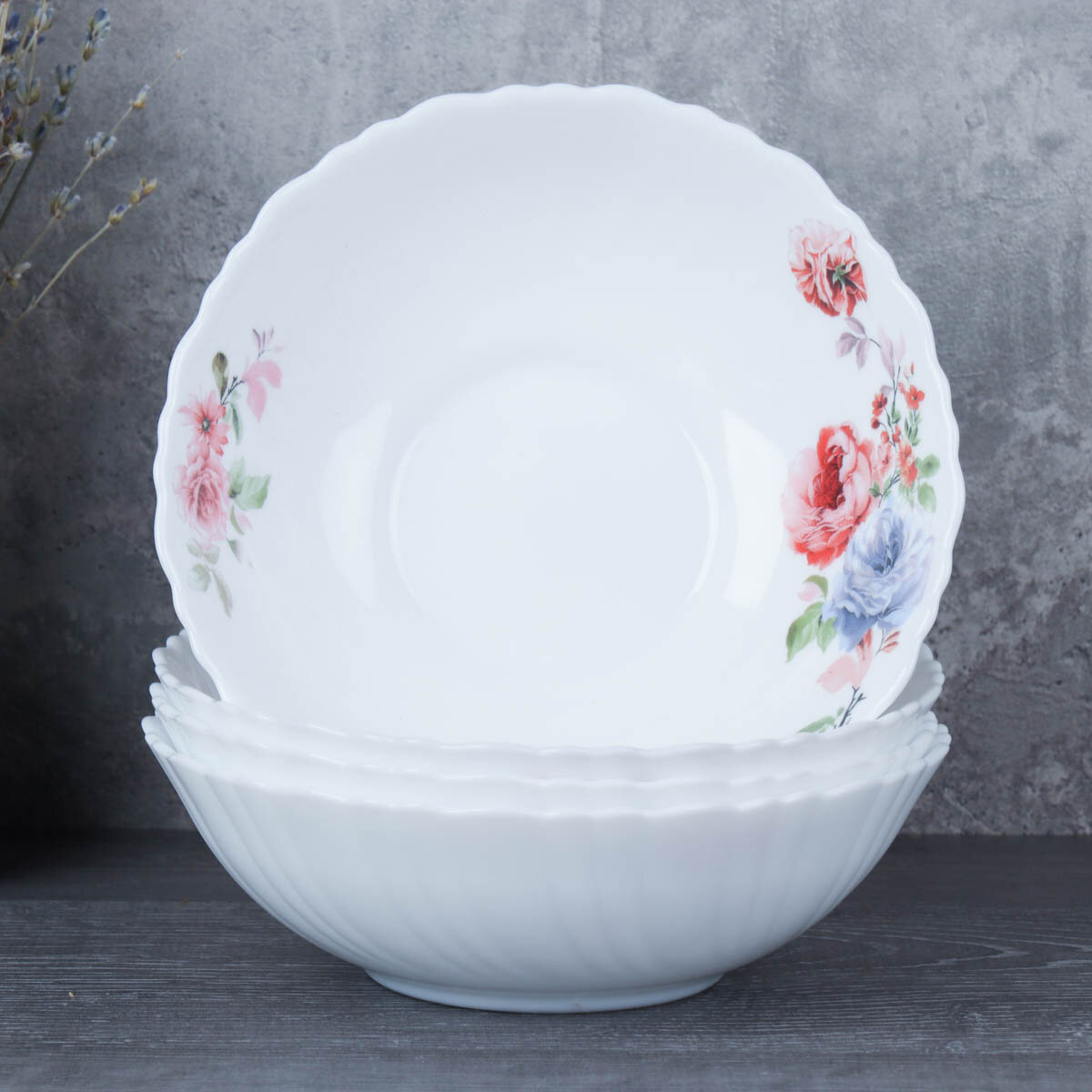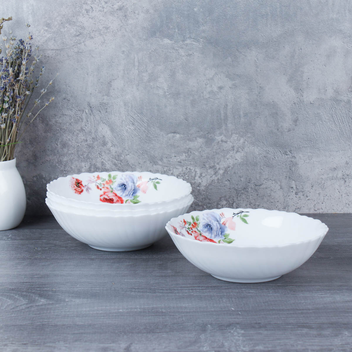 Купить Набор тарелок суповых небольших "Синяя роза" 4 шт, салатник 480 мл