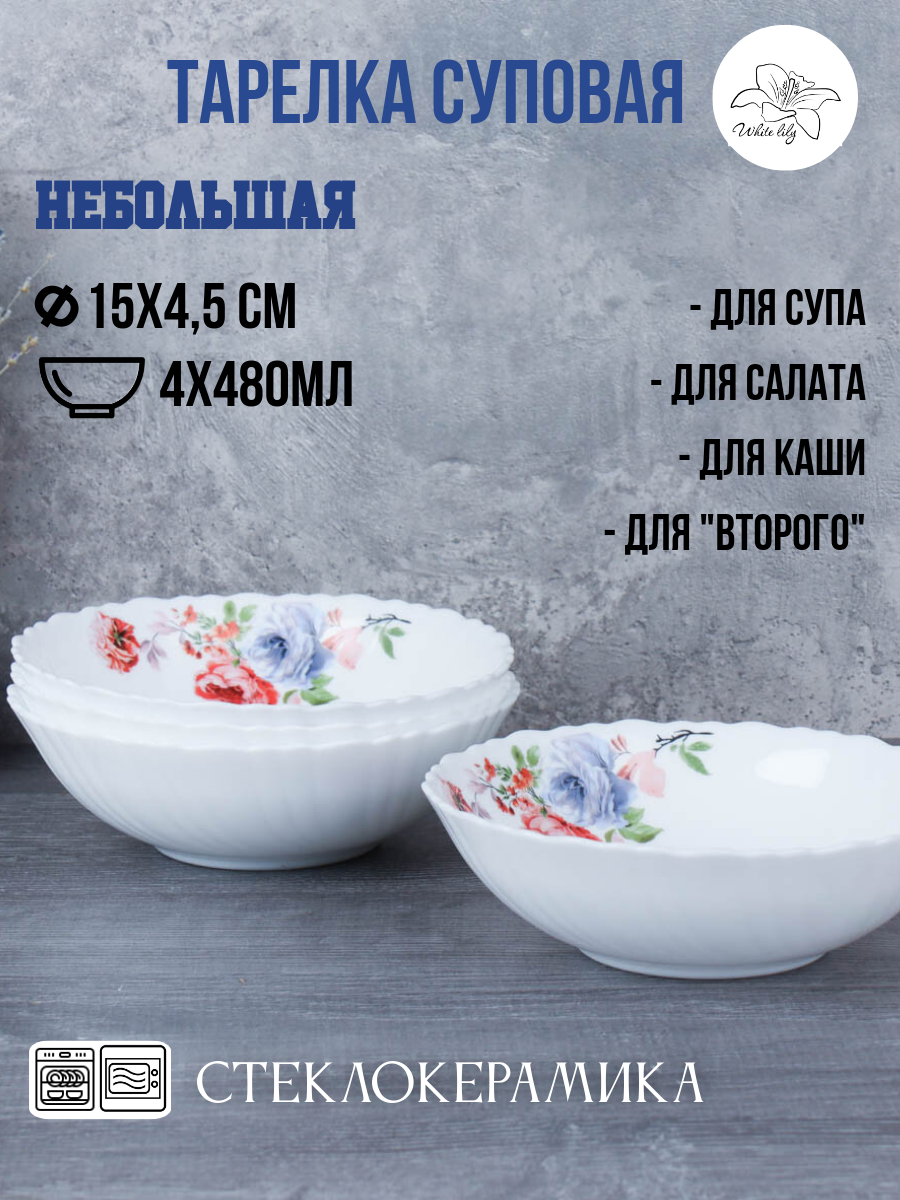 Набор тарелок глубоких суповых 550 мл / Тарелка для супа -4 штуки