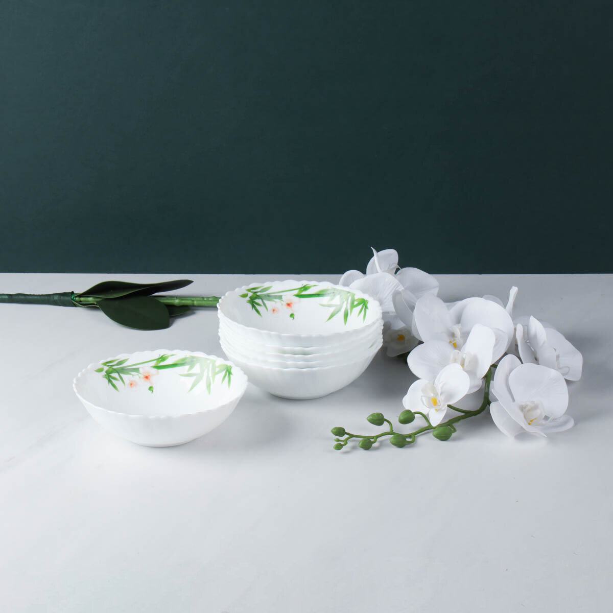 Набор тарелок суповых глубоких 6 штук Бамбук с орхидеей 650 мл