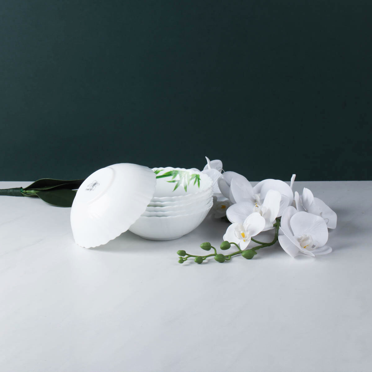 Тарелка глубокая суповая - 6 штук/ Салатники "Ветка орхидеи" 650 мл