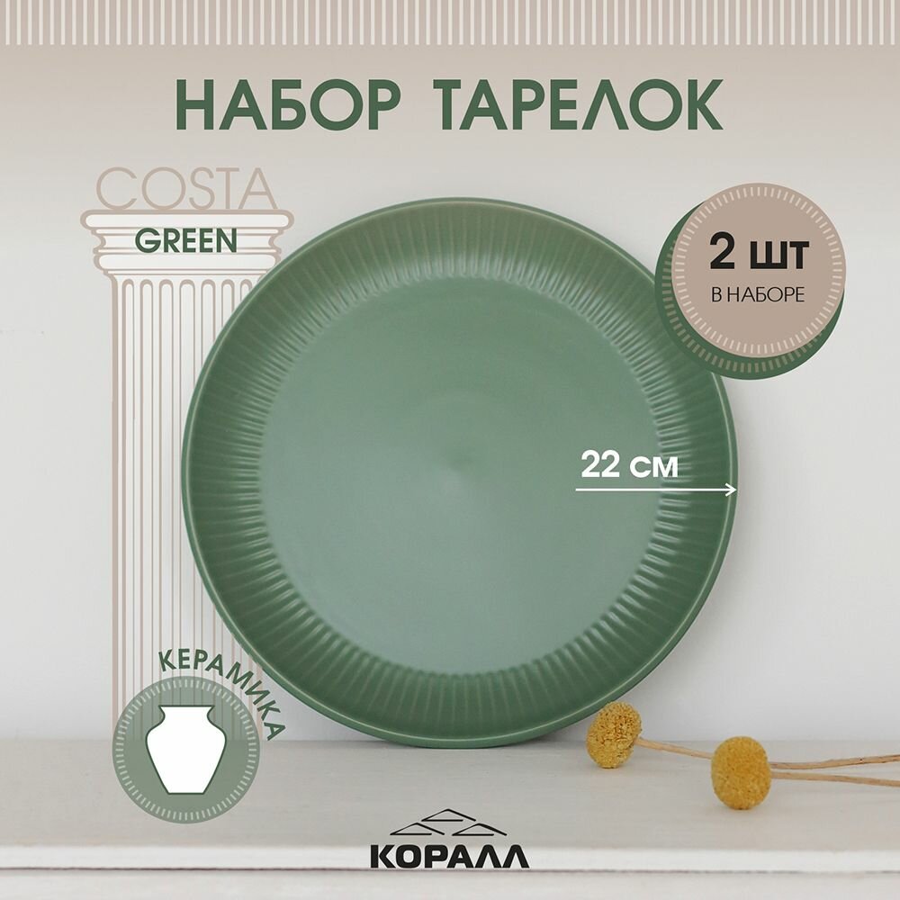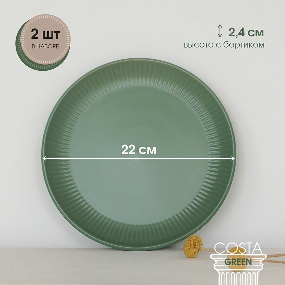 Купить Набор тарелок 2шт 22см керамика "Costa green" Тарелка обеденная плоская для вторых блюд на две персоны