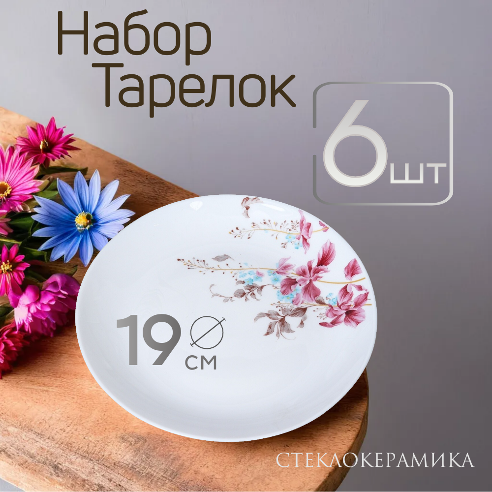 Тарелка 190 мм 6 штук Олеандр десертных набор интересное:
