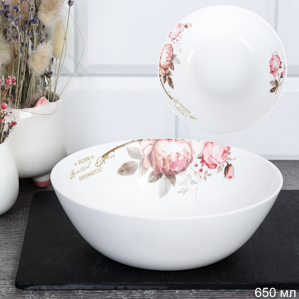 Тарелка глубокая суповая 650 мл из серии Чайная роза (Дэй) - 4 штуки интересное: