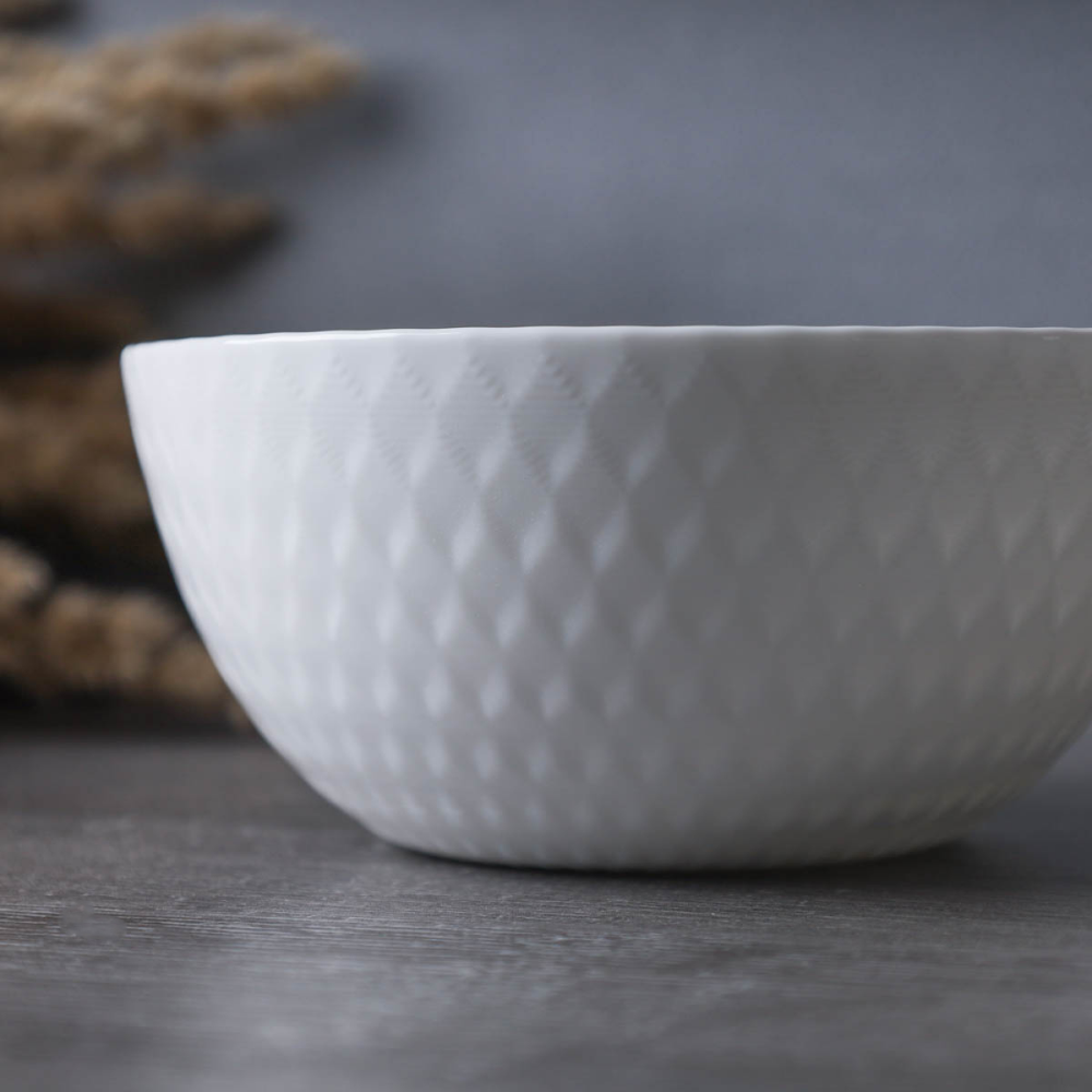 Салатник набор 6 шт 550 мл WHITE LILY "Плетёнка", стеклокерамика, белый