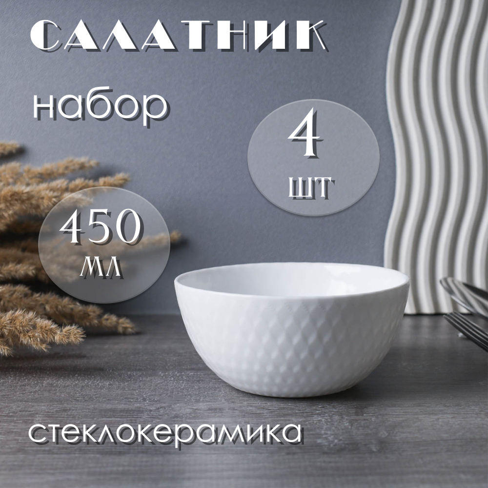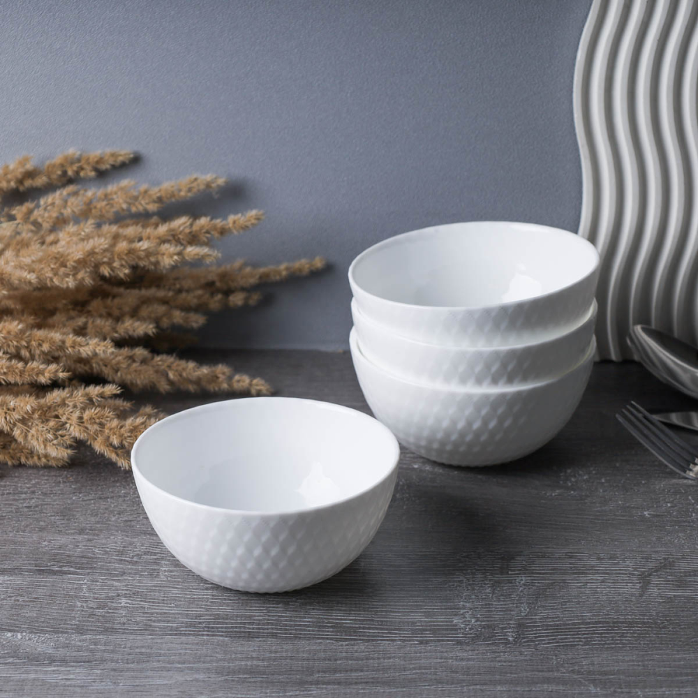 Салатник набор 4 шт 450 мл "Плетенка" WHITE LILY белый, стеклокерамика интересное: