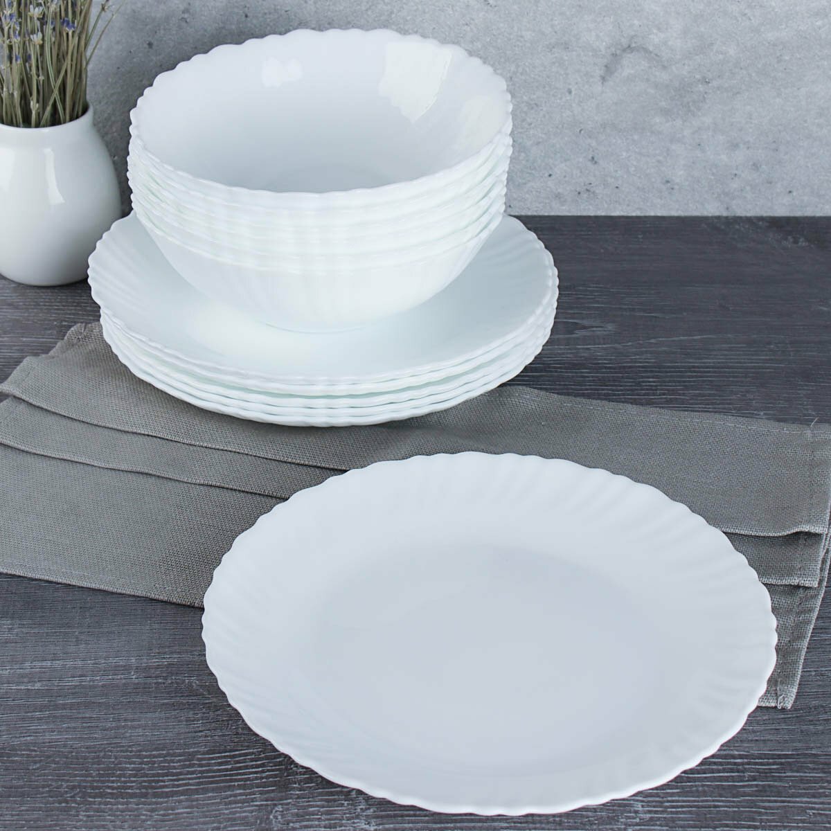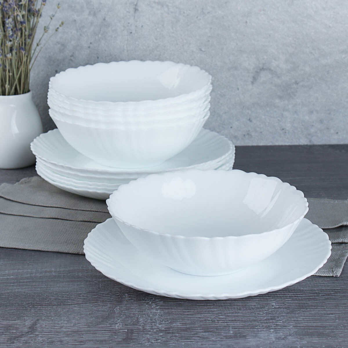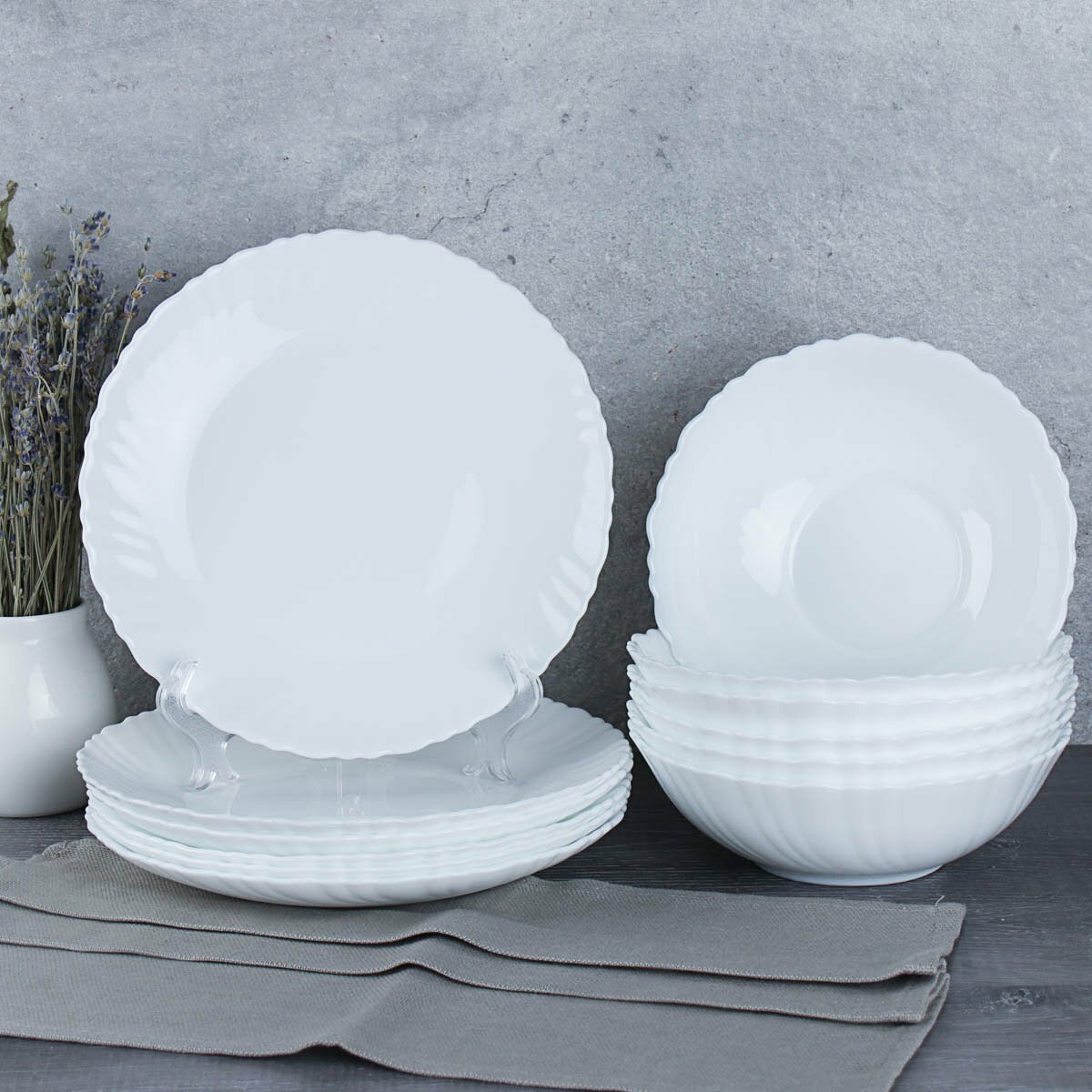 Купить Набор тарелок 12 штук "Белоснежный", десертные и глубокие тарелки