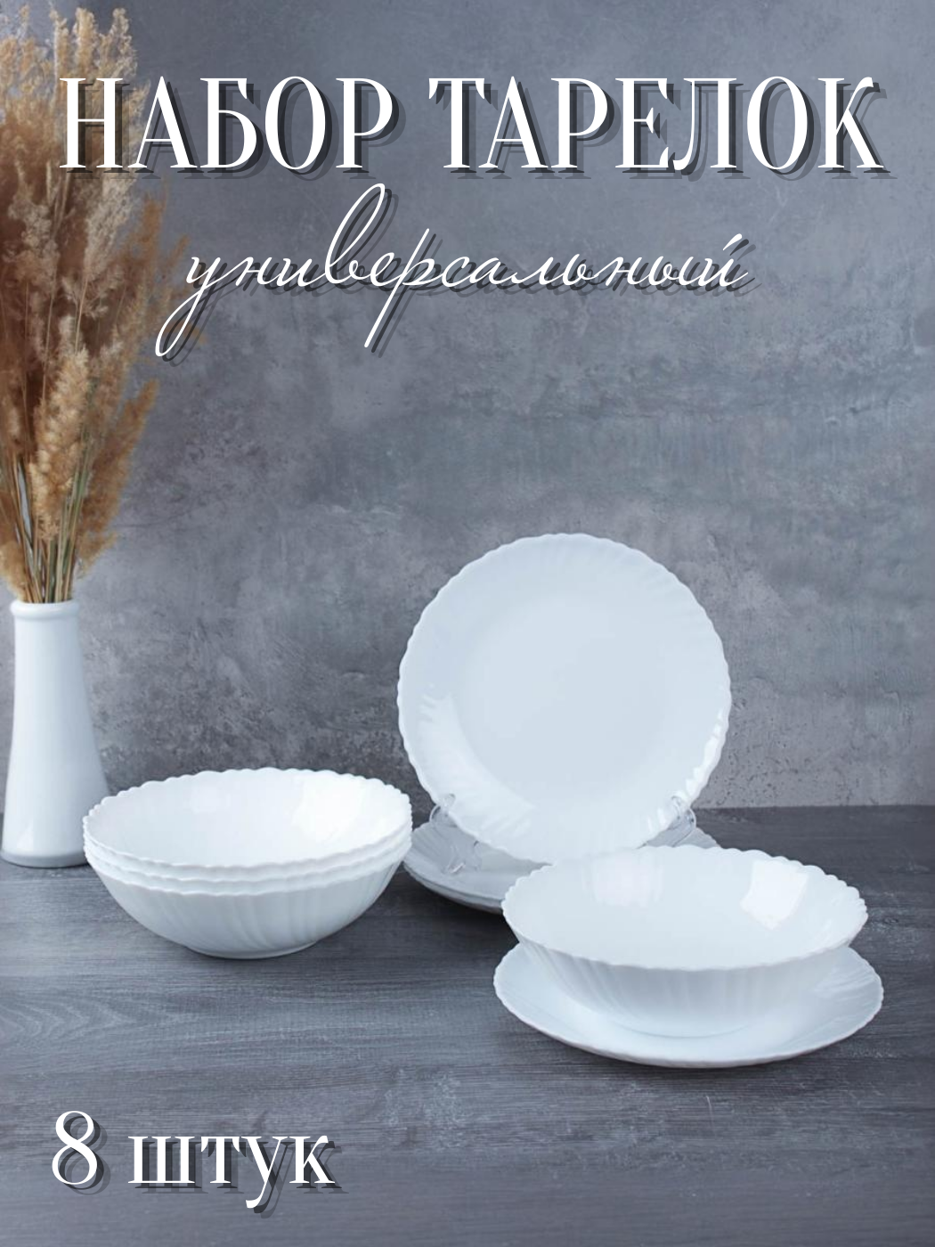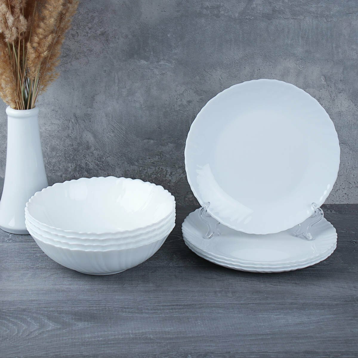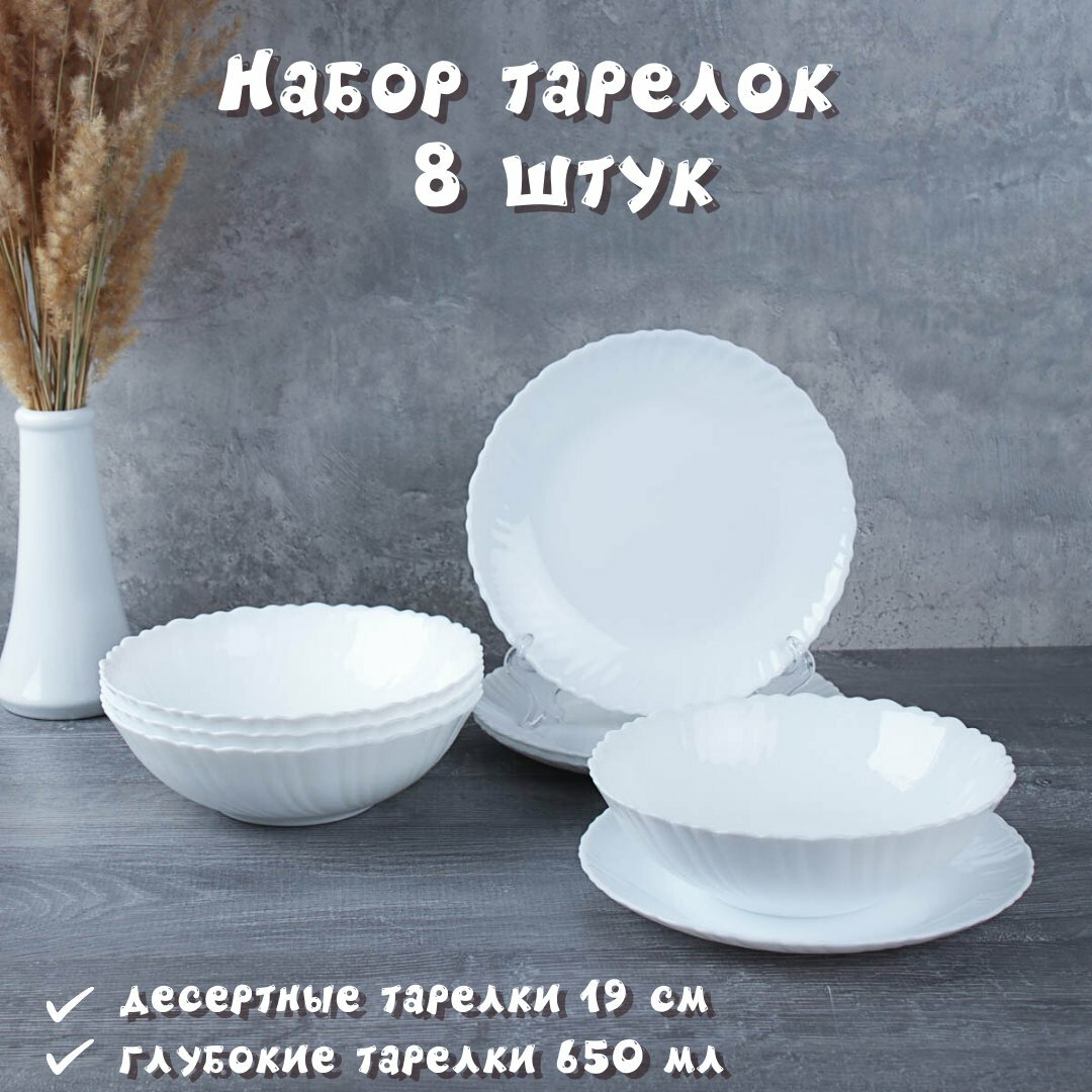 Купить Набор тарелок 8 штук "Белоснежный", десертные и глубокие тарелки