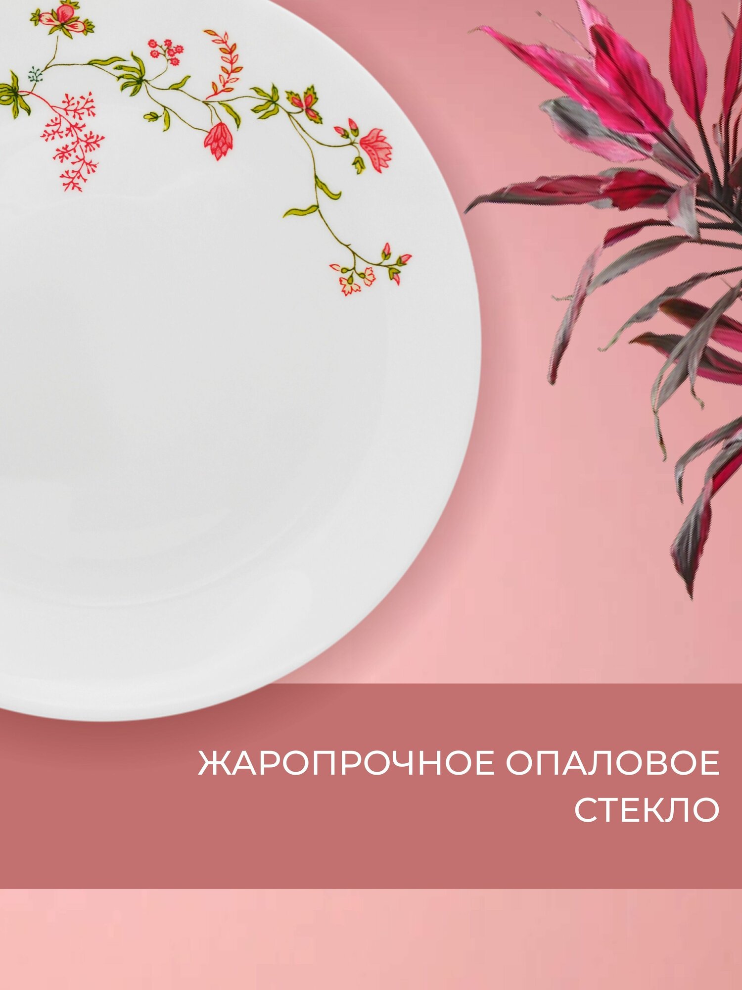 Набор тарелок 6 ШТУК NataM обеденные 24 сантиметра, Жаклин, стеклокерамика