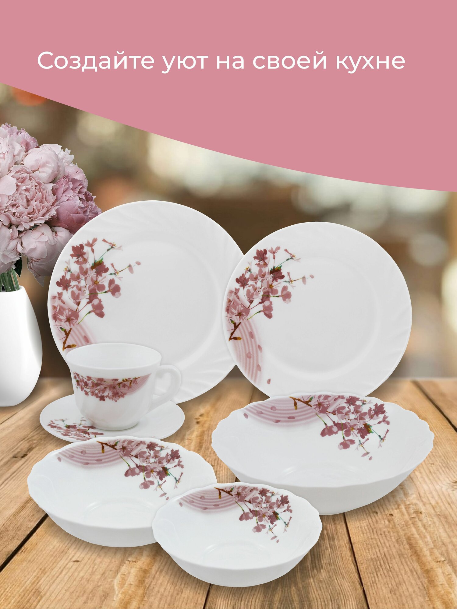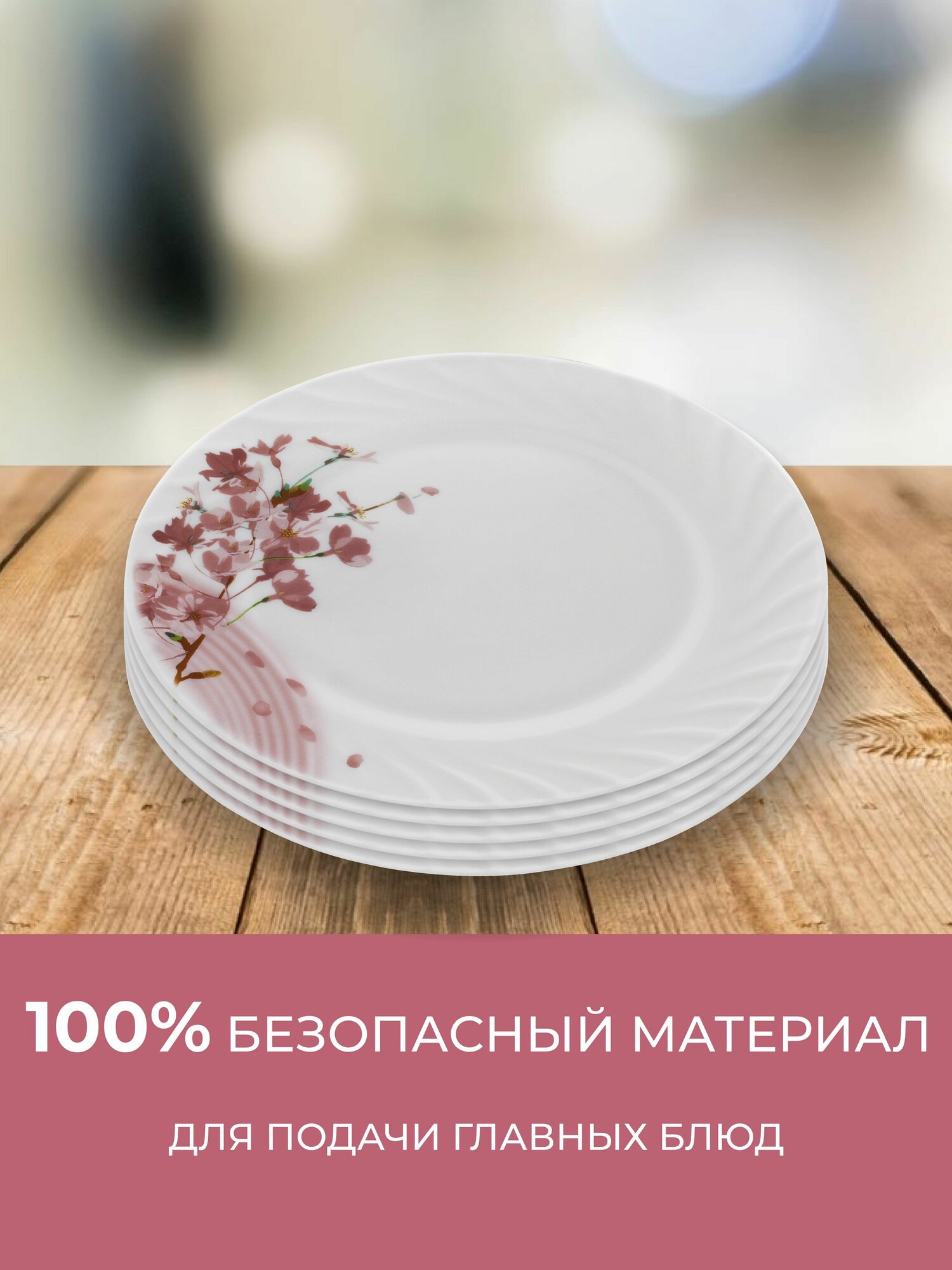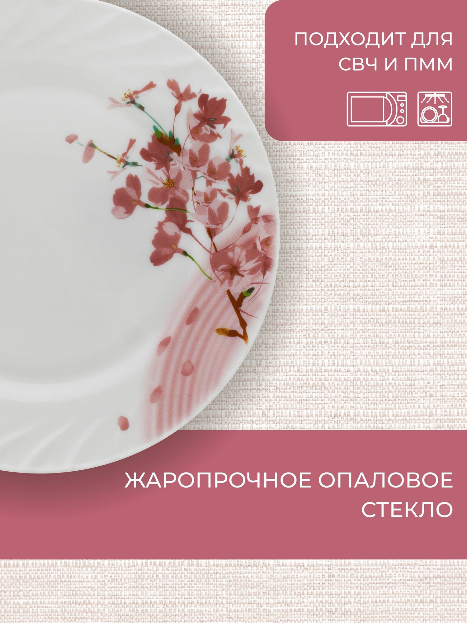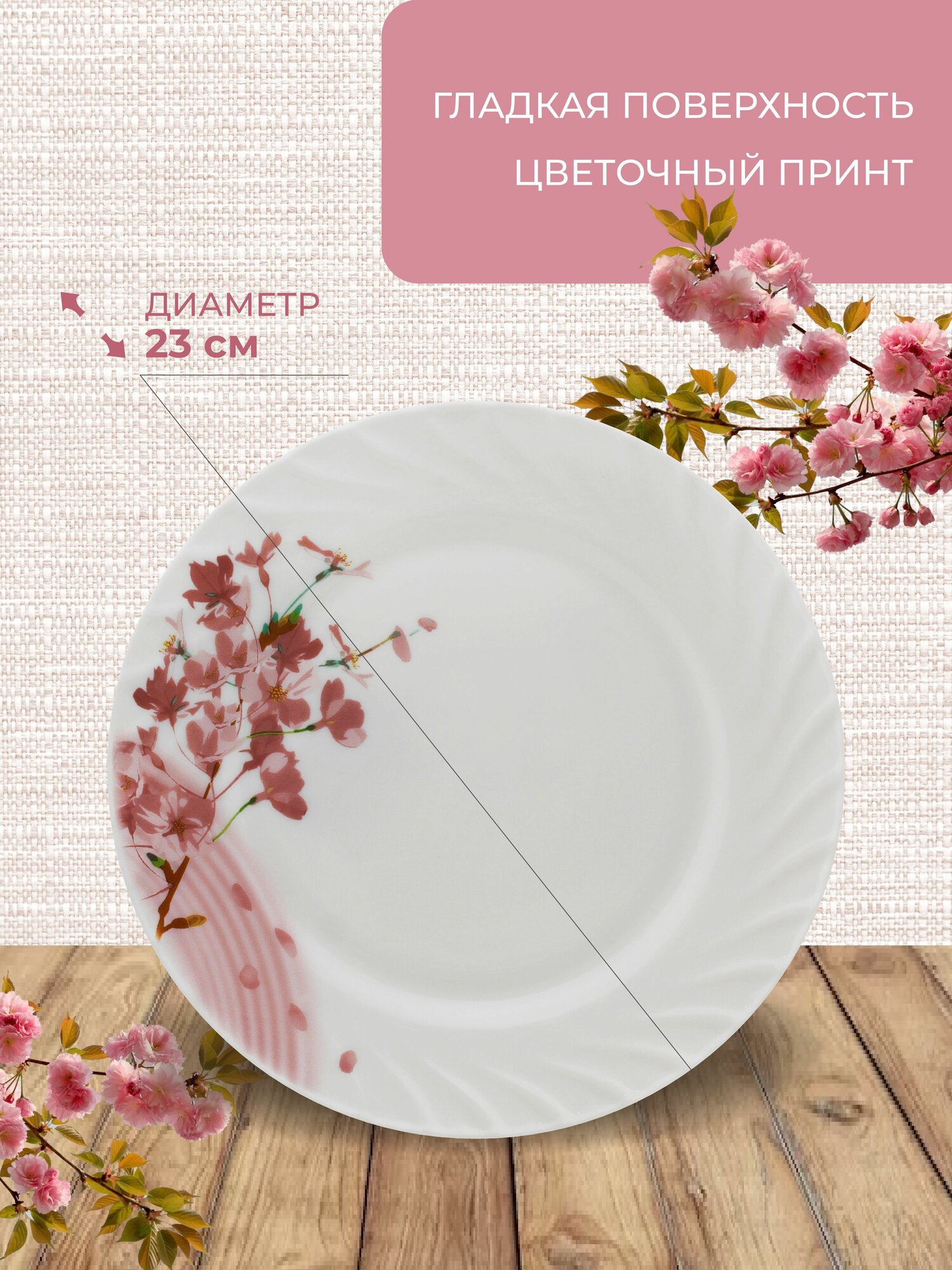 Набор тарелок обеденных НатаМ 6 ШТУК Ветка Сакуры 23 сантиметра, опаловое жаропрочное стекло интересное: