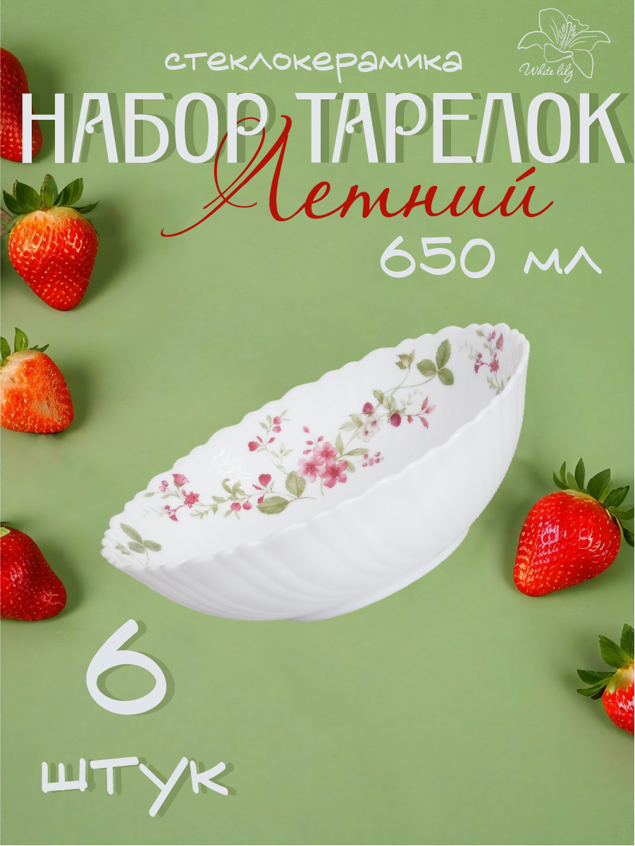 Набор тарелок глубоких "Летний", обеденных, 650 мл, 6 штук в комплекте интересное: