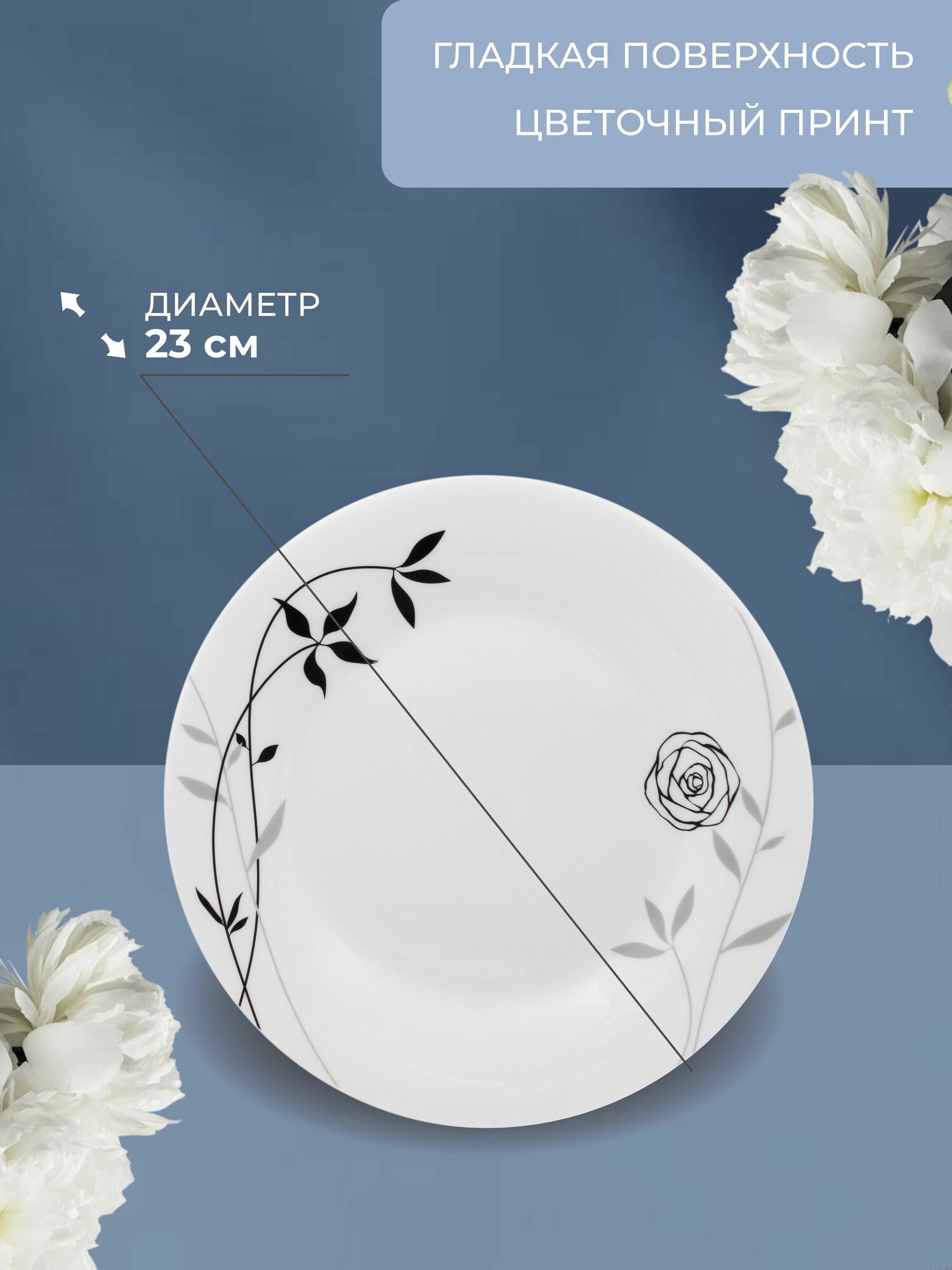 Набор тарелок обеденных НатаМ 6 ШТУК Элизабет 23 сантиметра, опаловое жаропрочное стекло интересное: