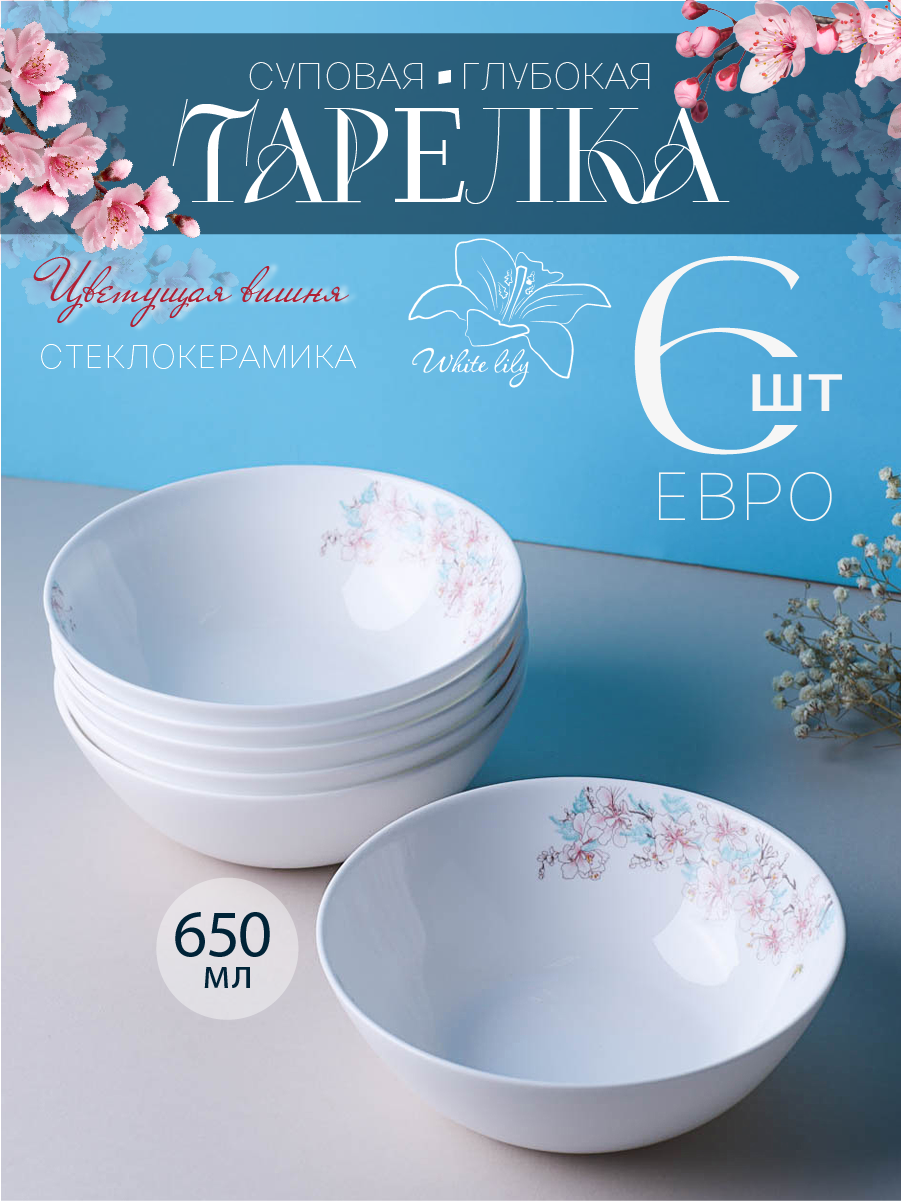 Набор глубоких тарелок 6 шт 650 мл ЕВРО Цветущая вишня интересное: