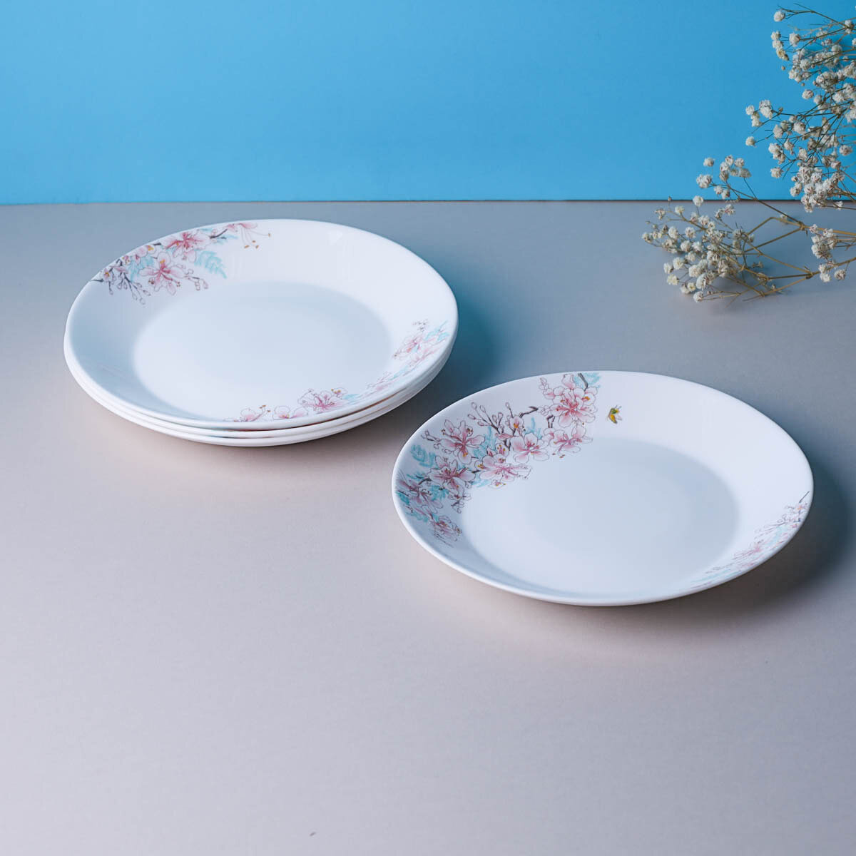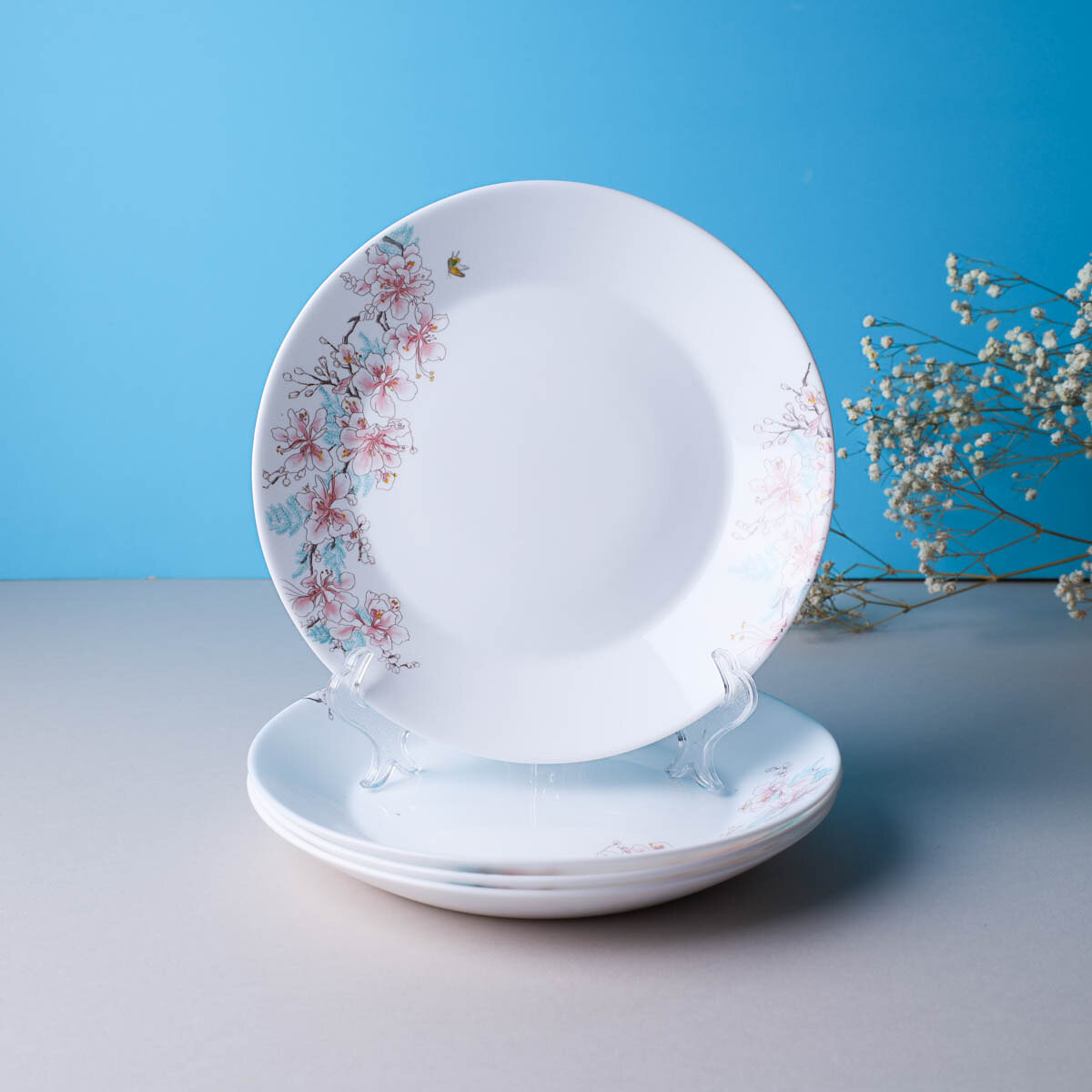 Набор плоских тарелок 4 шт 19 см евро Вишня Цветущая интересное: