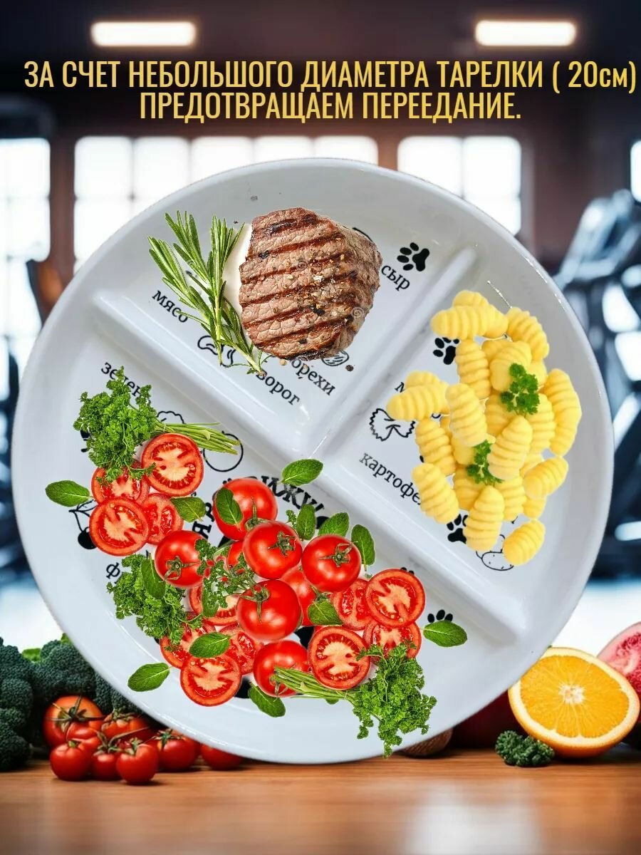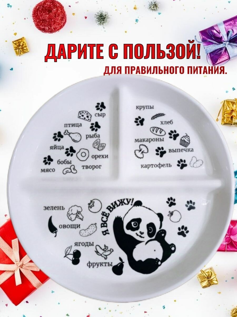 Тарелка "Панда", для похудения, секционная, керамика, фарфор, диаметр 20см интересное: