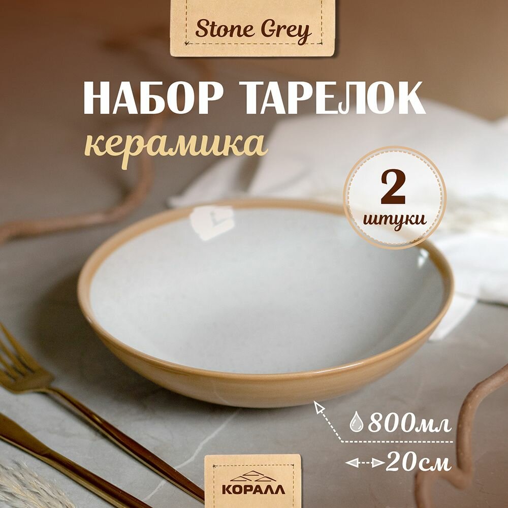 Купить Набор глубоких тарелок керамика Stone Grey, 2 штуки, 800 мл, 20 см