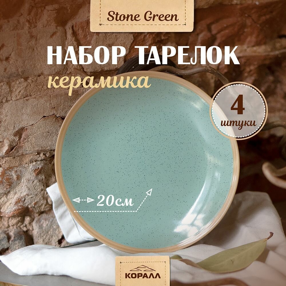 Купить Тарелки набор 4шт 20см "Stone green" керамика, тарелка десертная закусочная для второго на четыре персоны