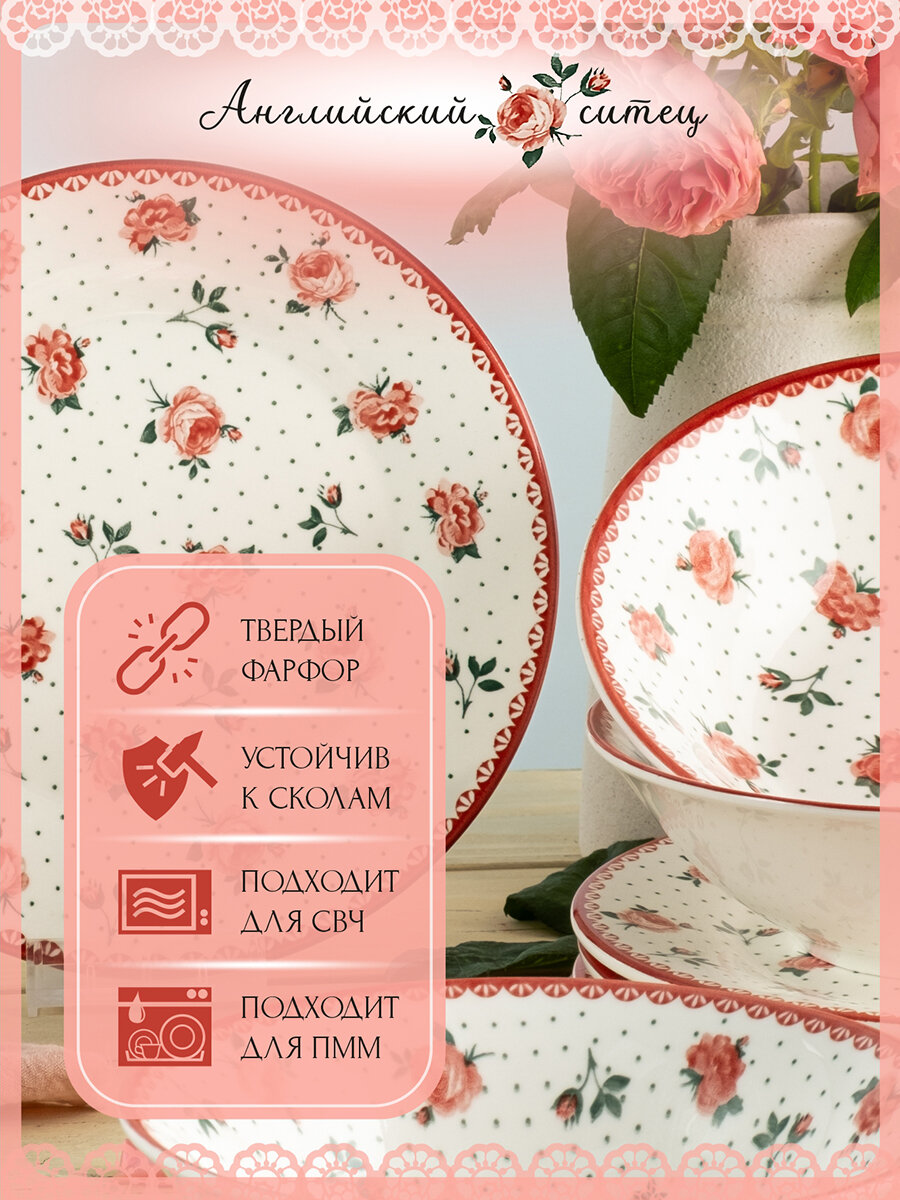 Набор салатников из фарфора 6шт 510мл/17см "Английский ситец", салатница тарелка глубокая для дома и дачи интересное: